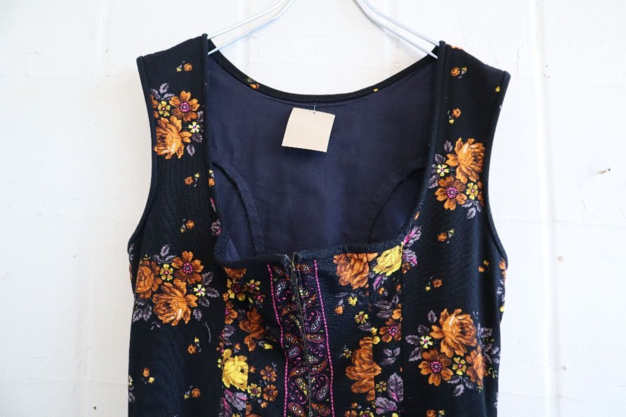black×orange front zip sleeveless tyrol dress [l-1325]