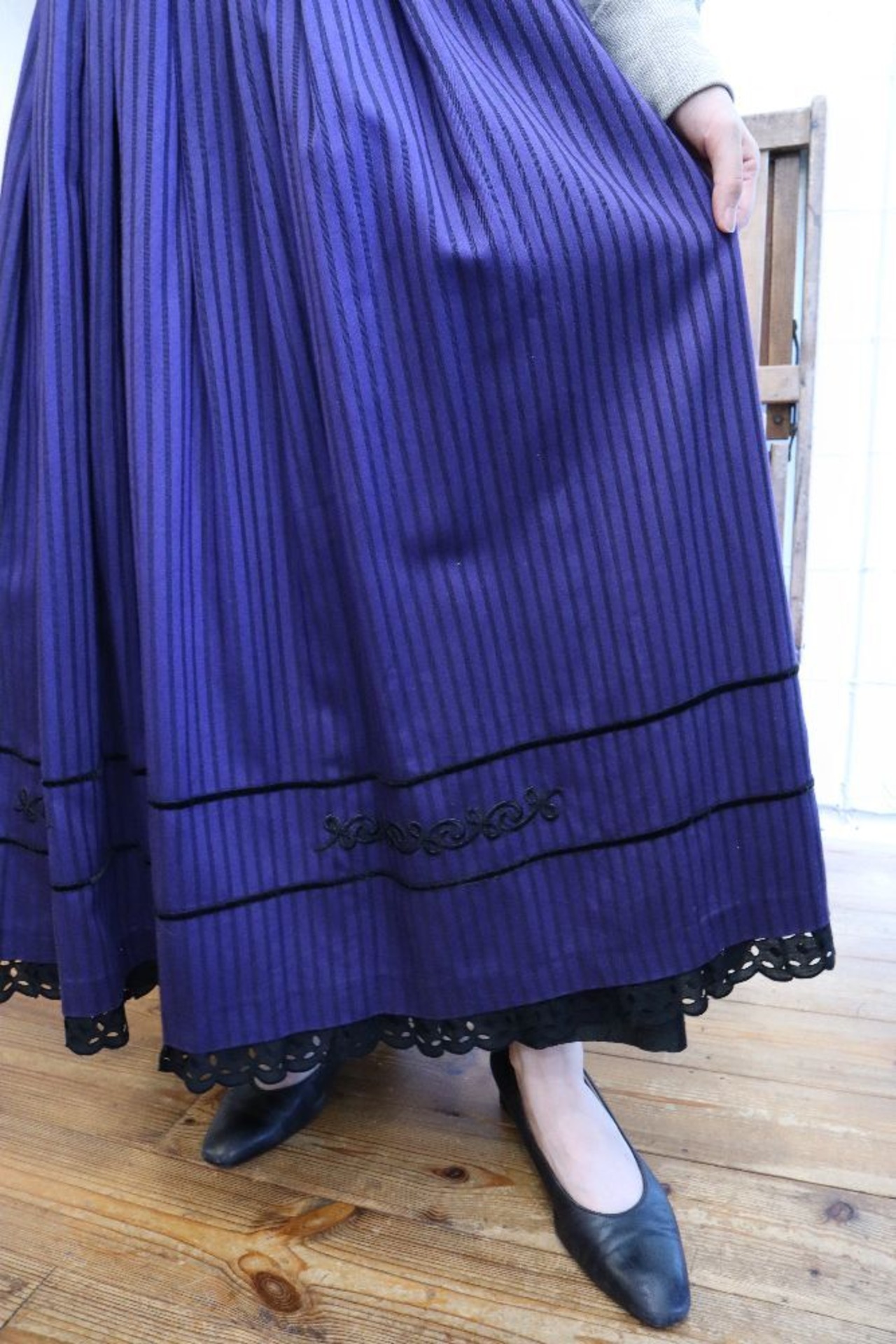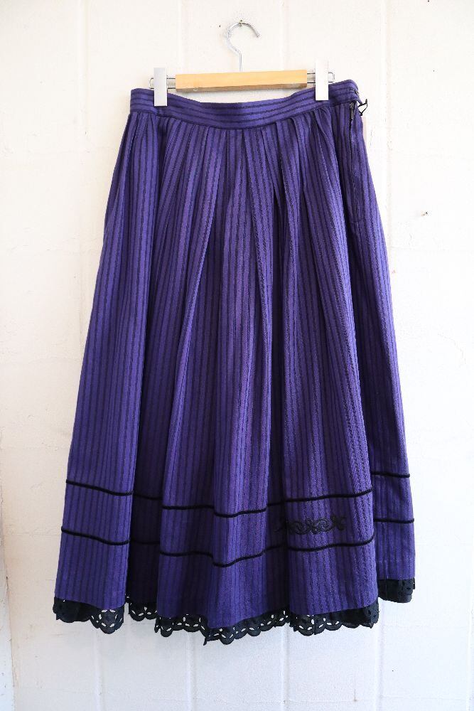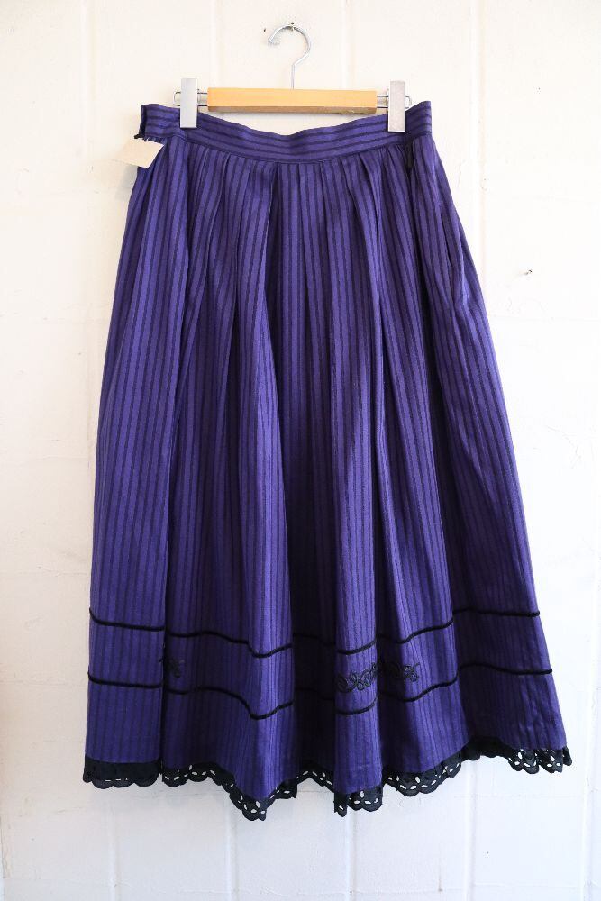 purple×black stripe velour tape tyrol skirt [l-1326]