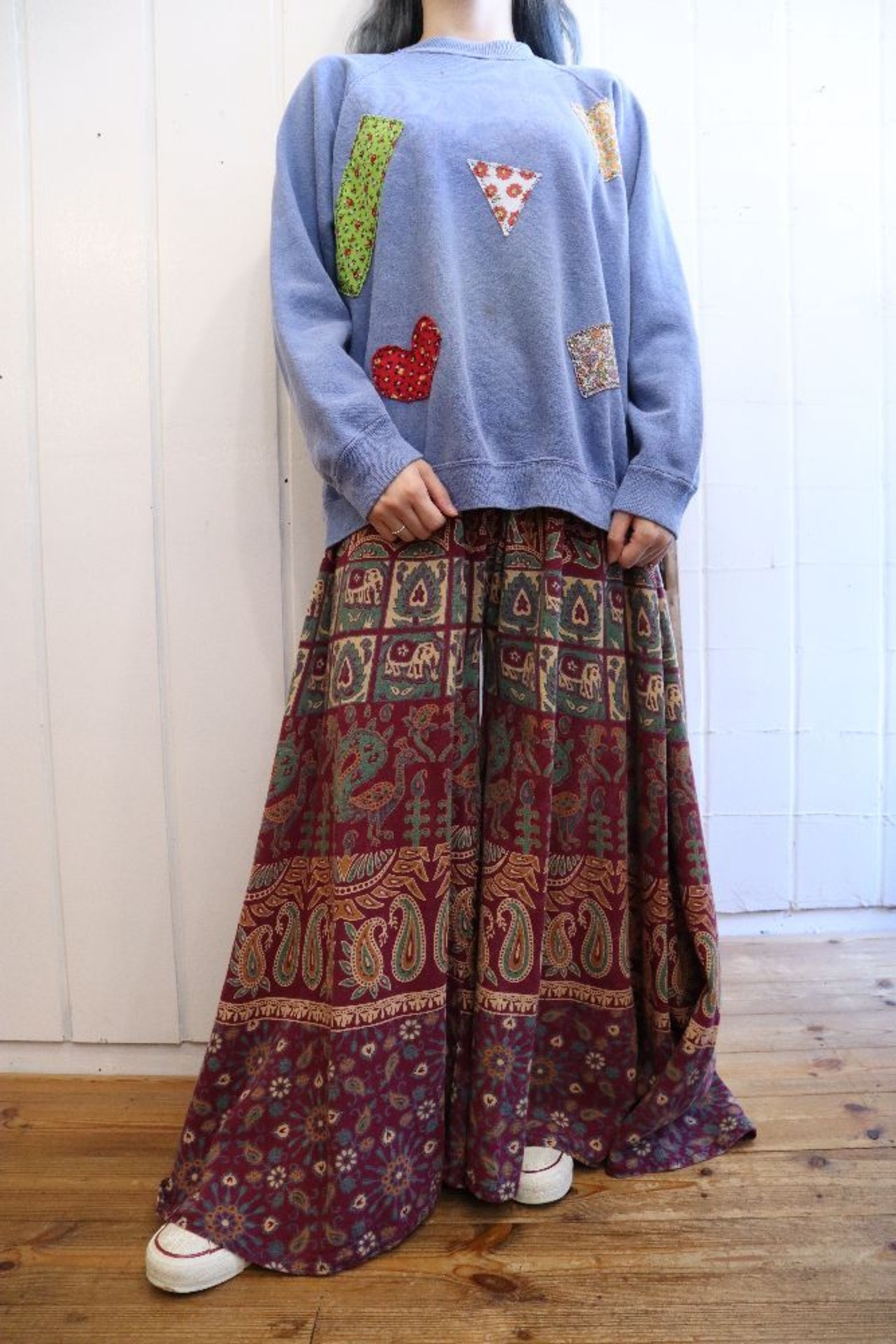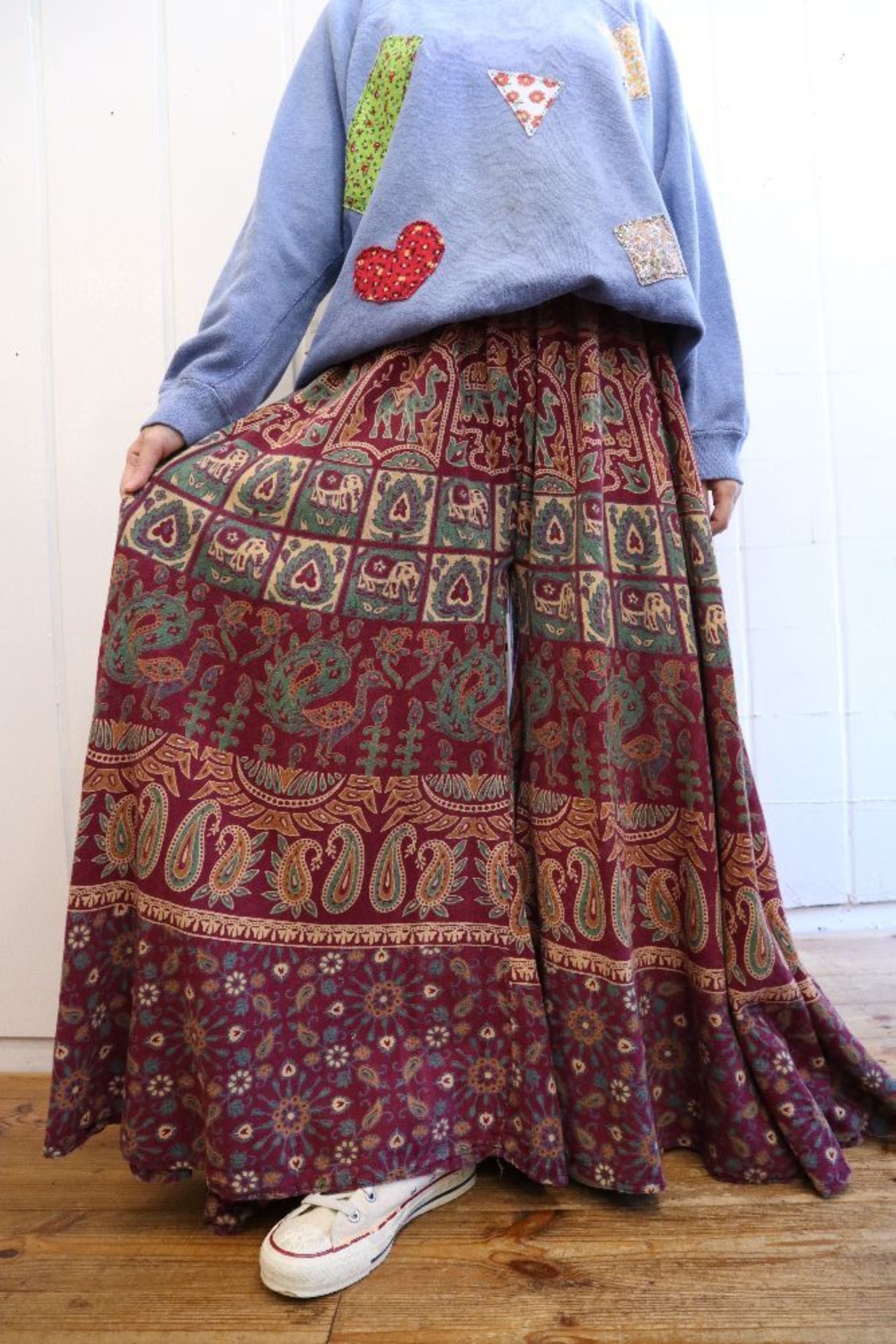 purple×beige×green India cotton super wide pants [l-1335]