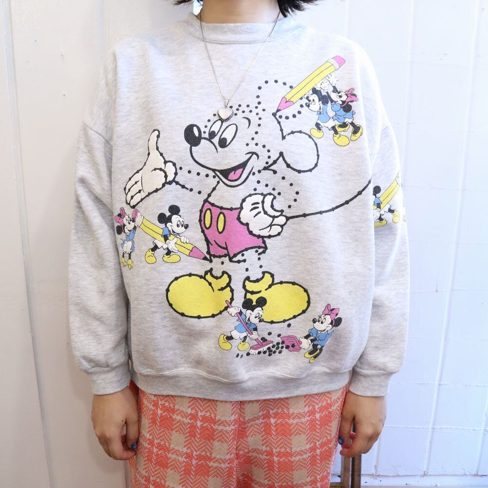 お絵描きしているデザインのプリントが可愛いミッキー&ミニースウェット。