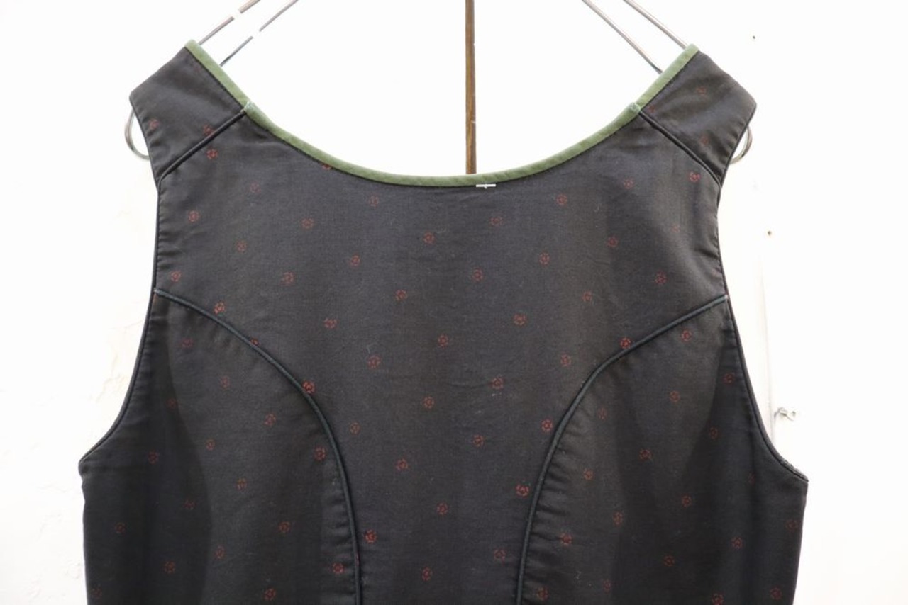 black×green×red flower pattern sleeveless tirol dress [l-1347]