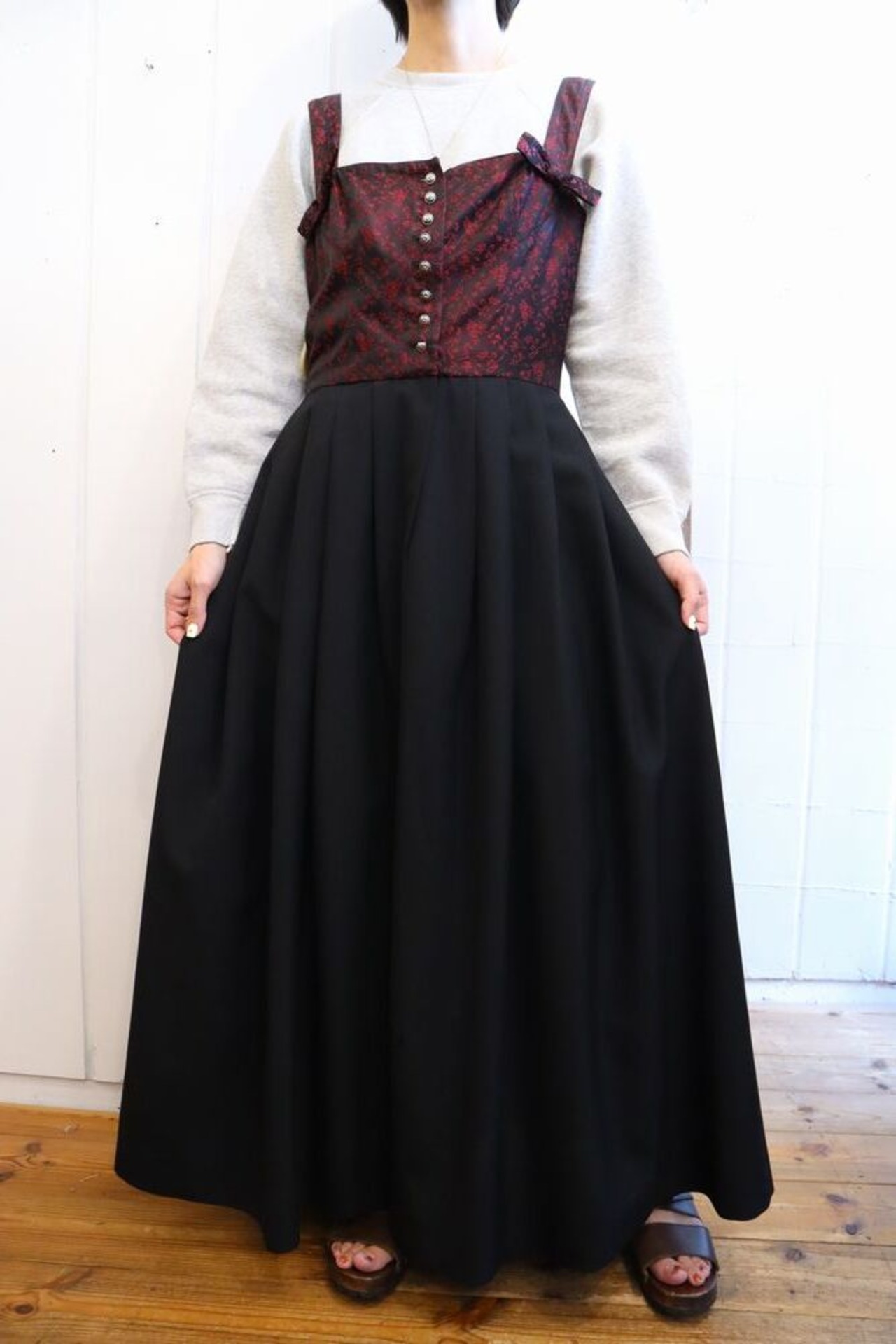 black×red flower embroidery sleeveless tirol dress [l-1349]