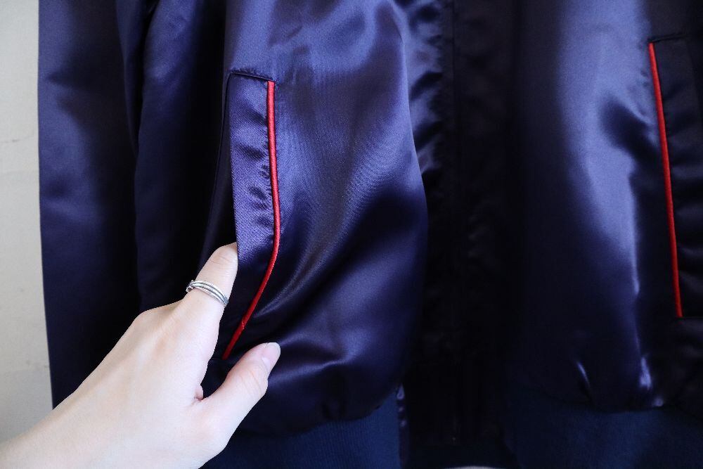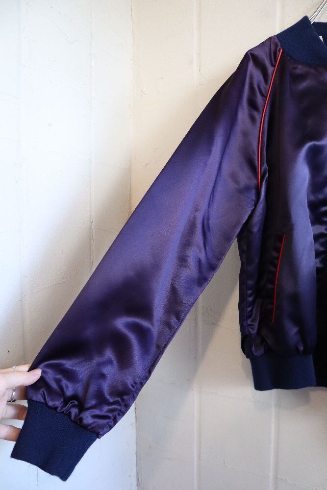 光沢感のある生地感や青紫のカラーも素敵な一枚*
