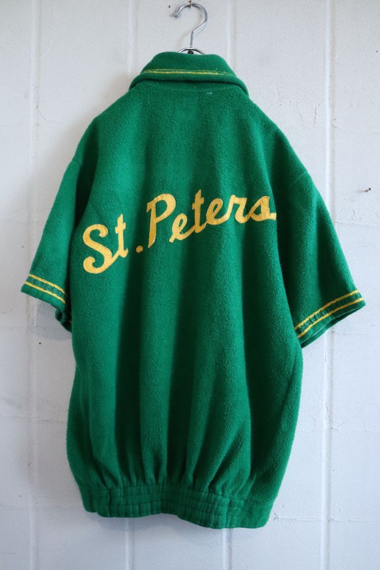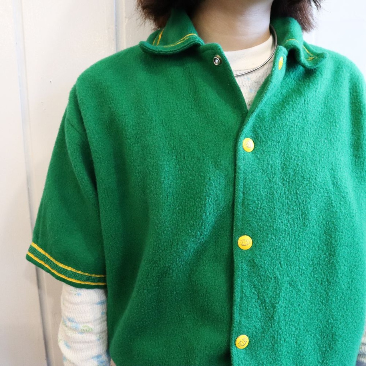 green × yellow patch design short sleeve fleece jacket [l-1354]