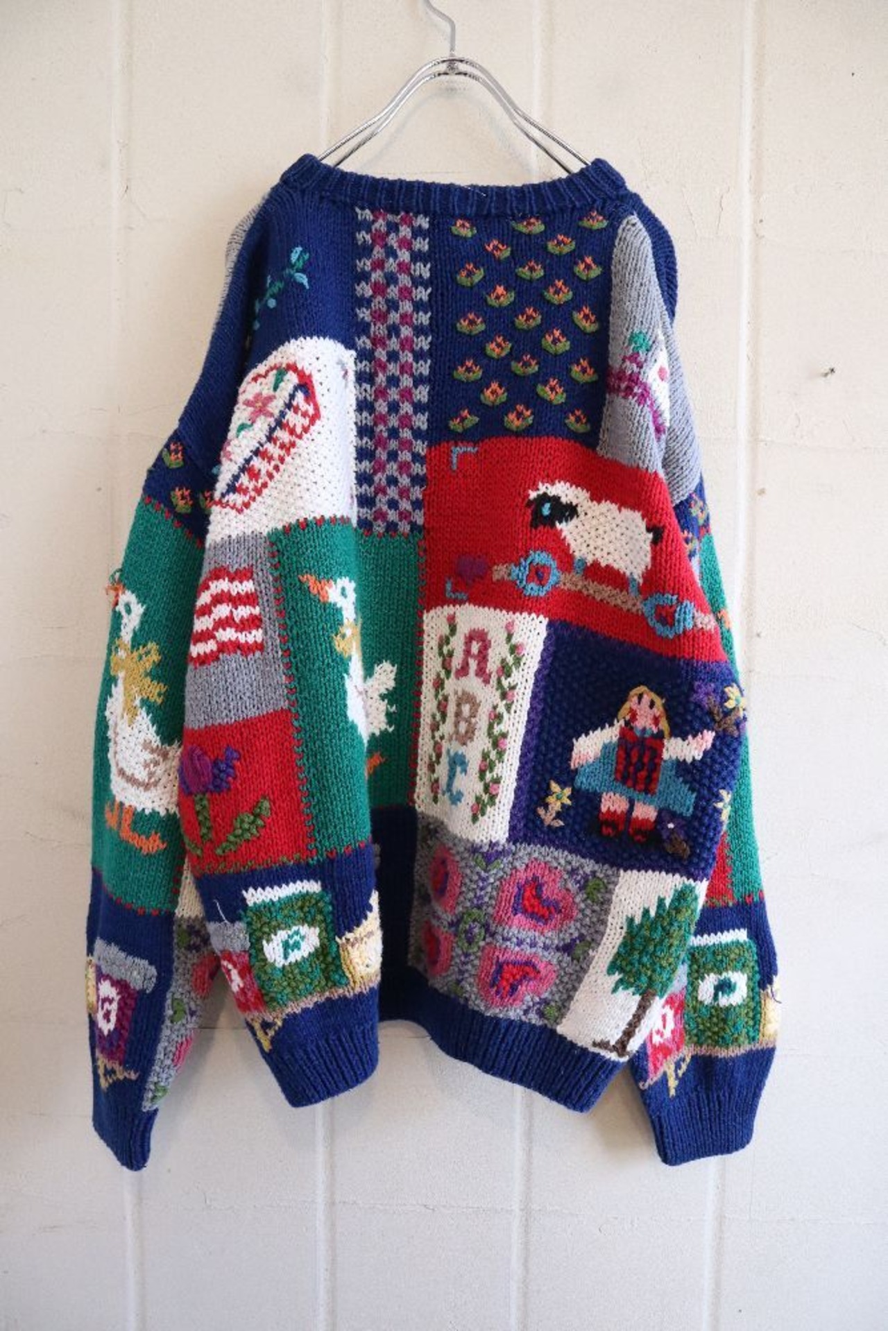 様々な柄が入ったごちゃごちゃデザインが可愛いコットンニットプルオーバー。
