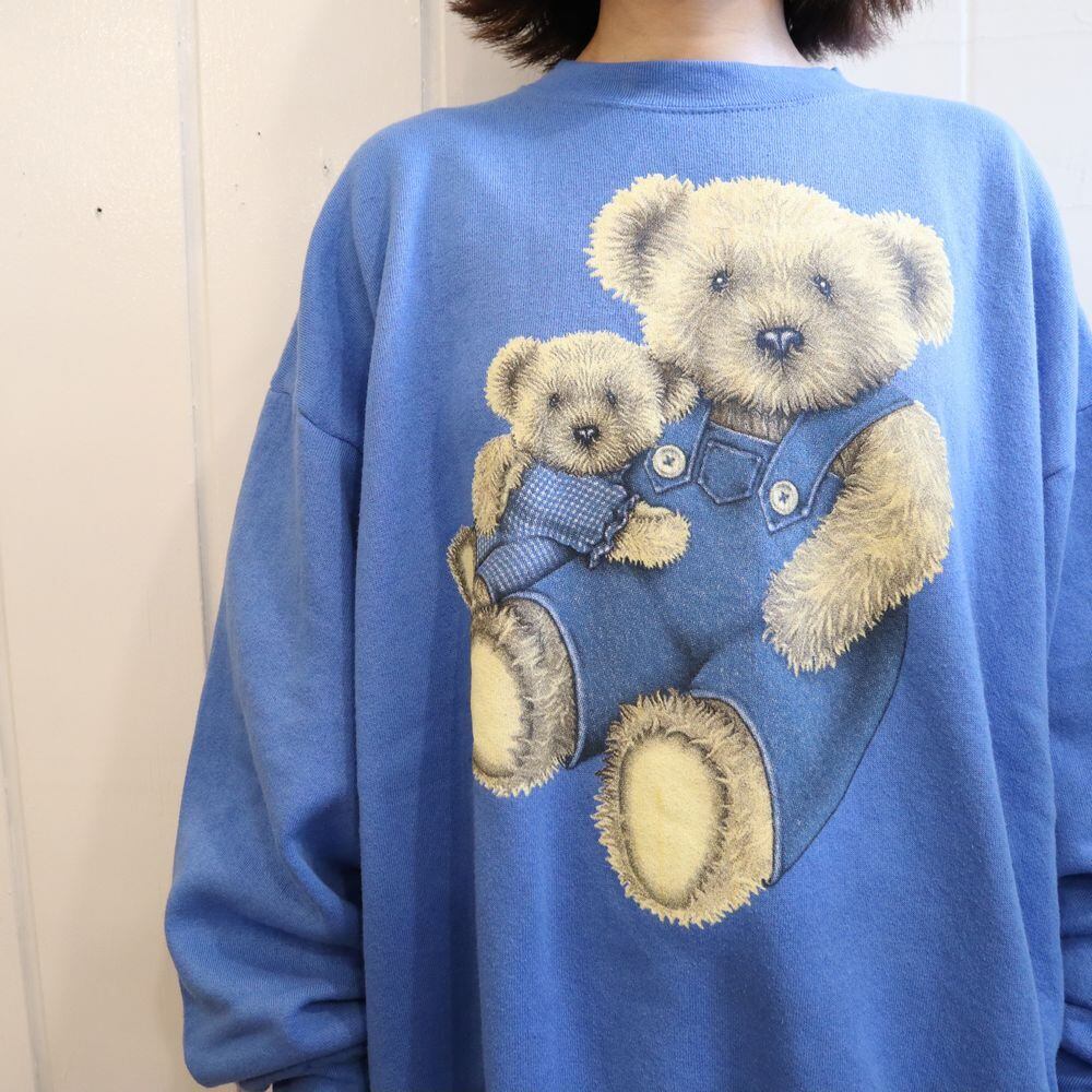 服を着た親子のテディーベアプリントが可愛いスウェットです♡