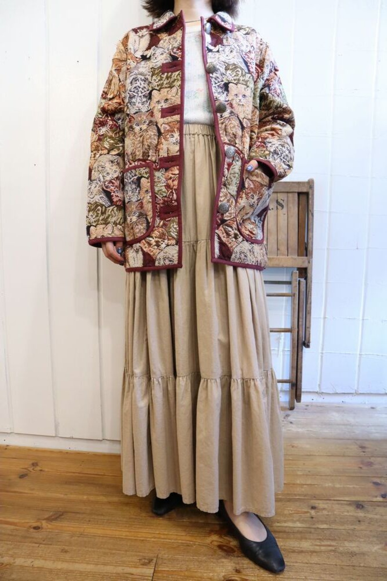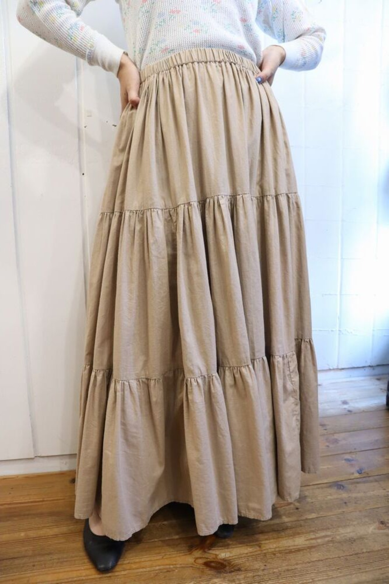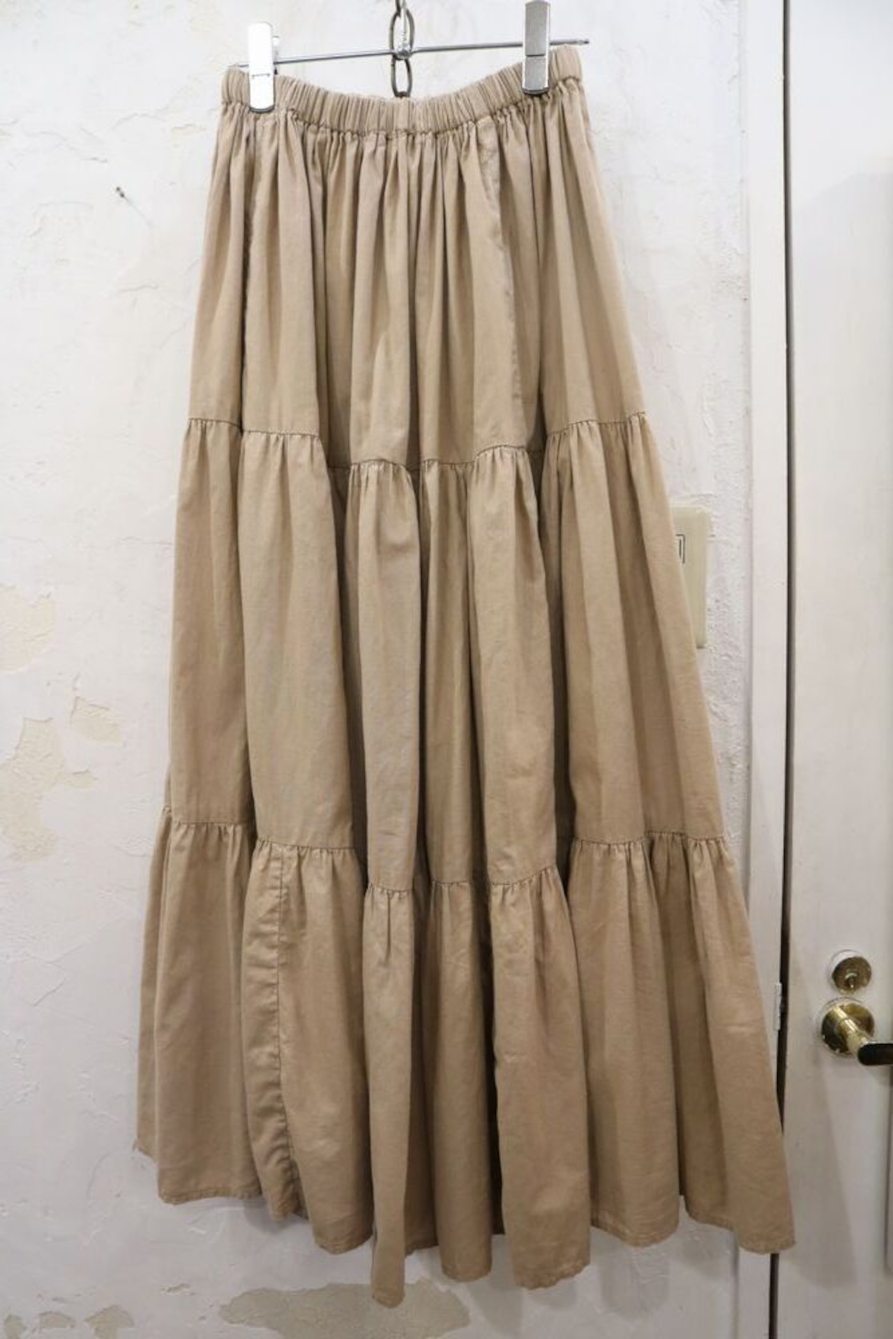 made in USA beige plain tiered skirt [l-1394]