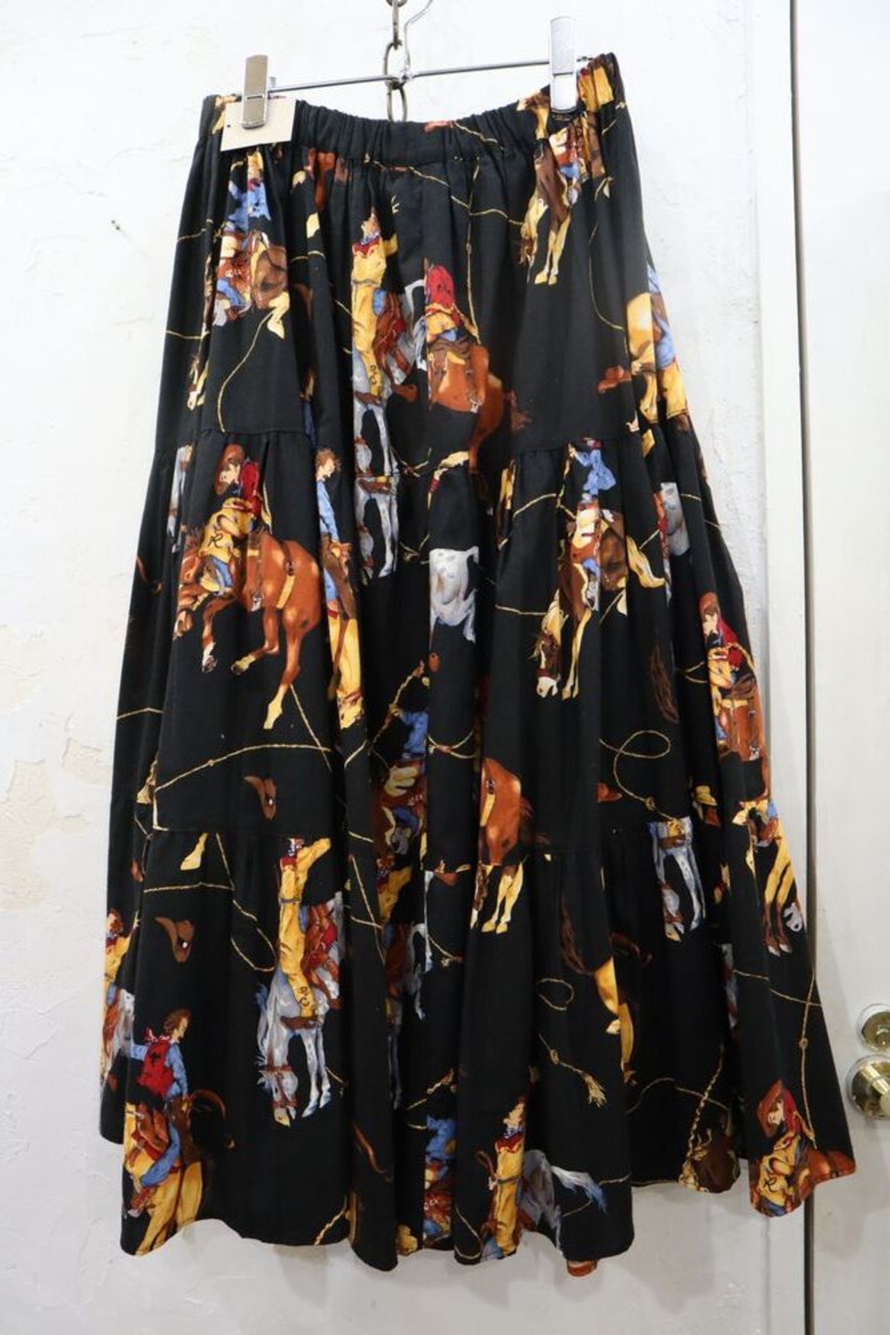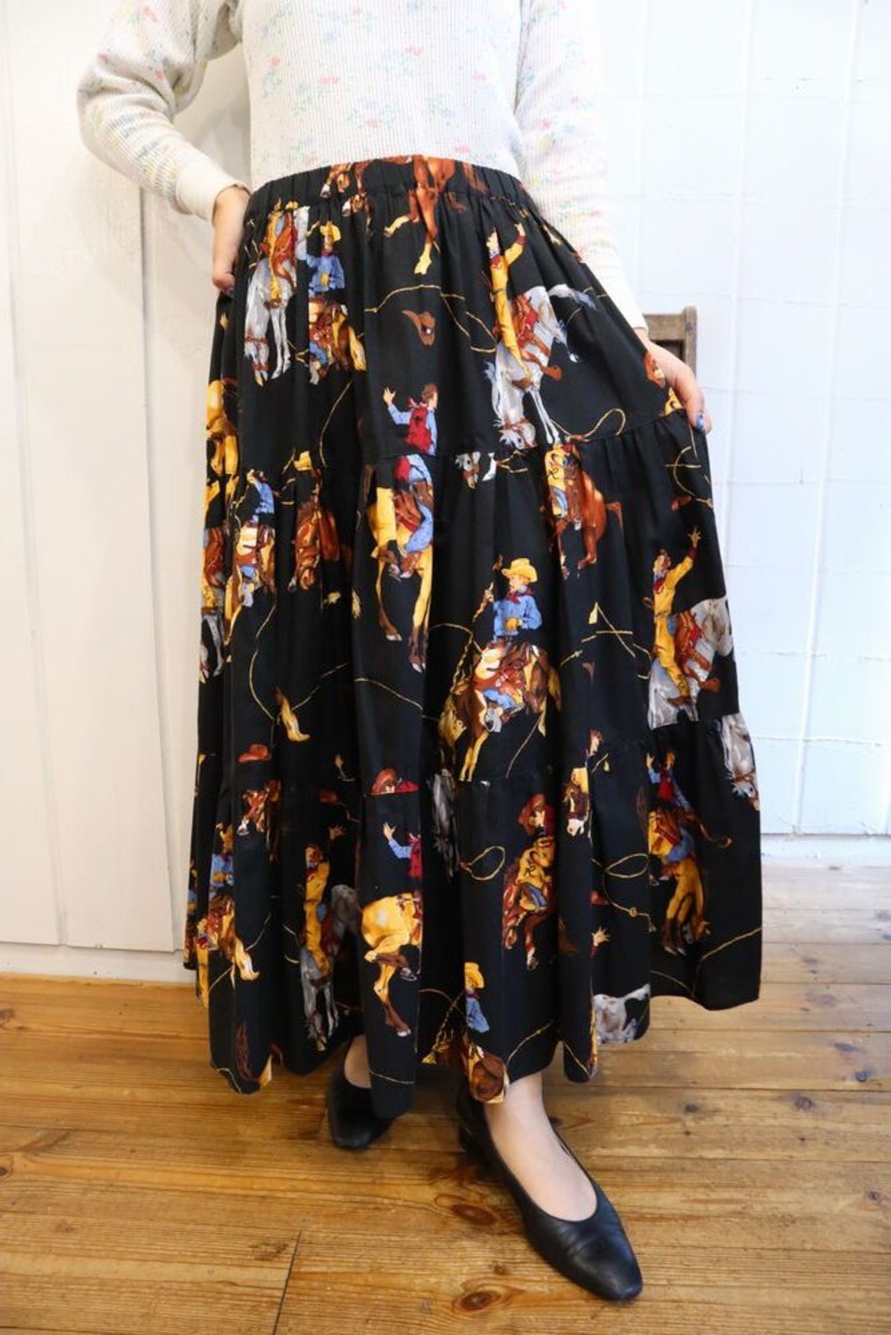 black×yellow×brown cowboy pattern tiered skirt [l-1395]