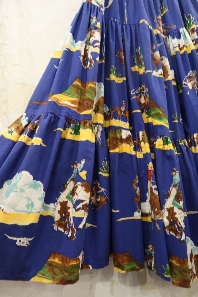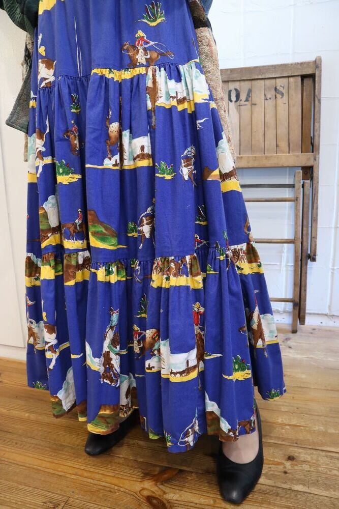 blue×yellow×brown cowboy pattern tiered skirt [l-1396]