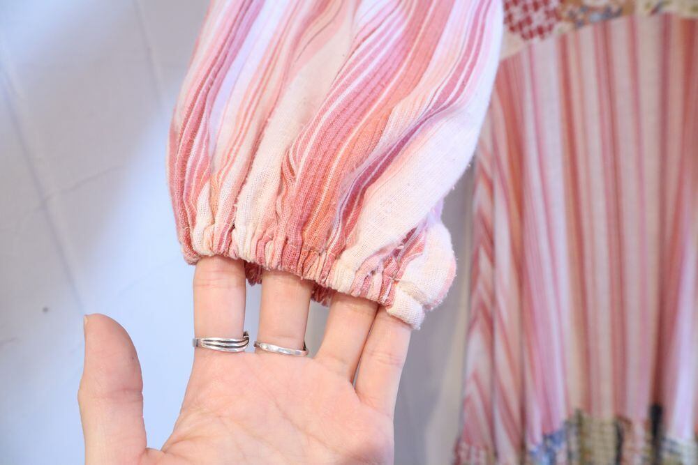 またティアードの切替部分にいくつか滑脱やホツレ、ボディに一部縫い目が表に出ている箇所、裾に一部ホツレがございますが、着用に問題はありません。