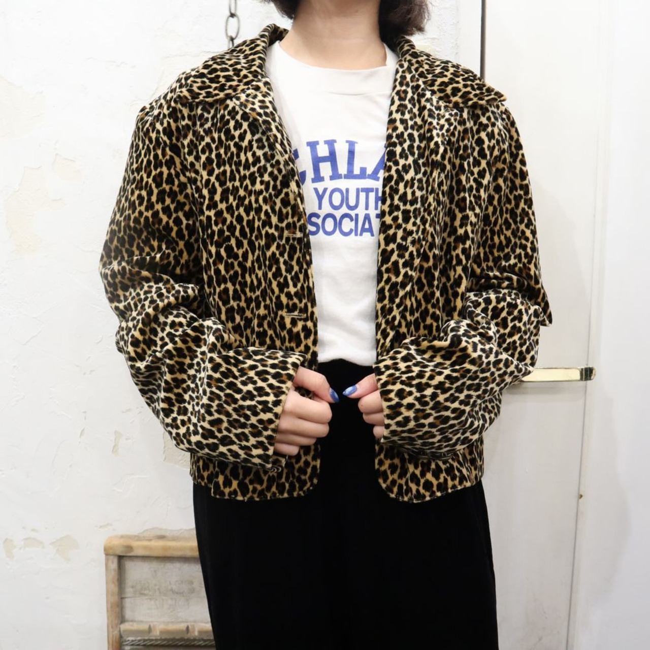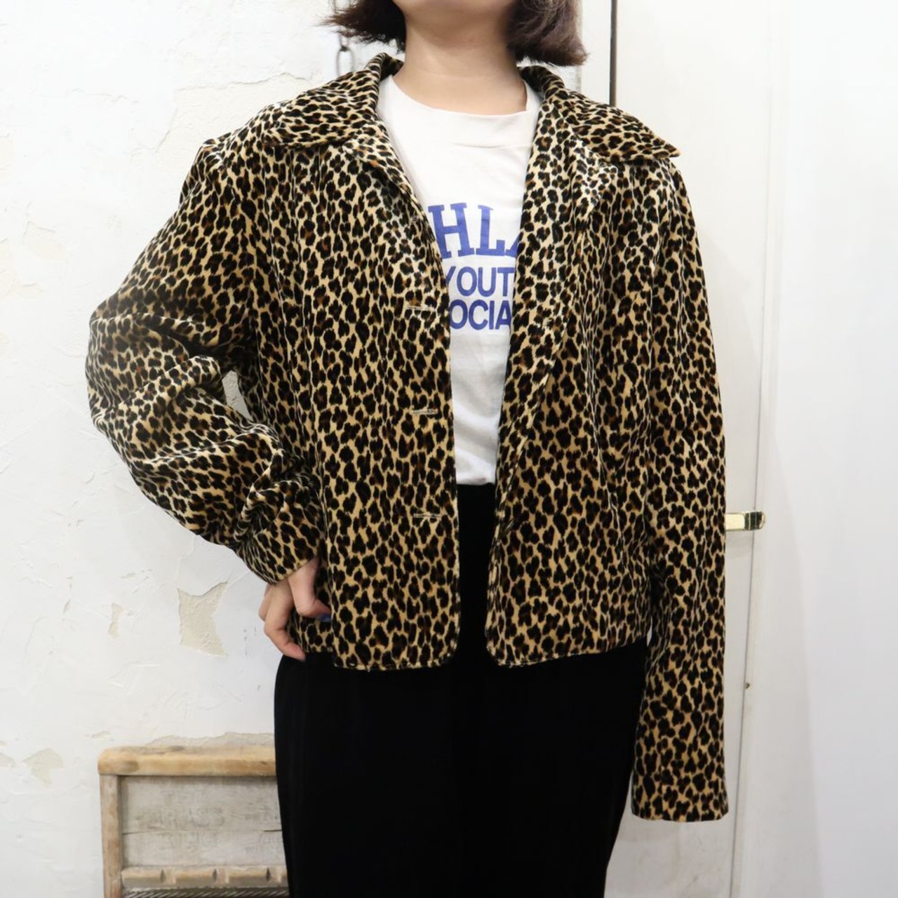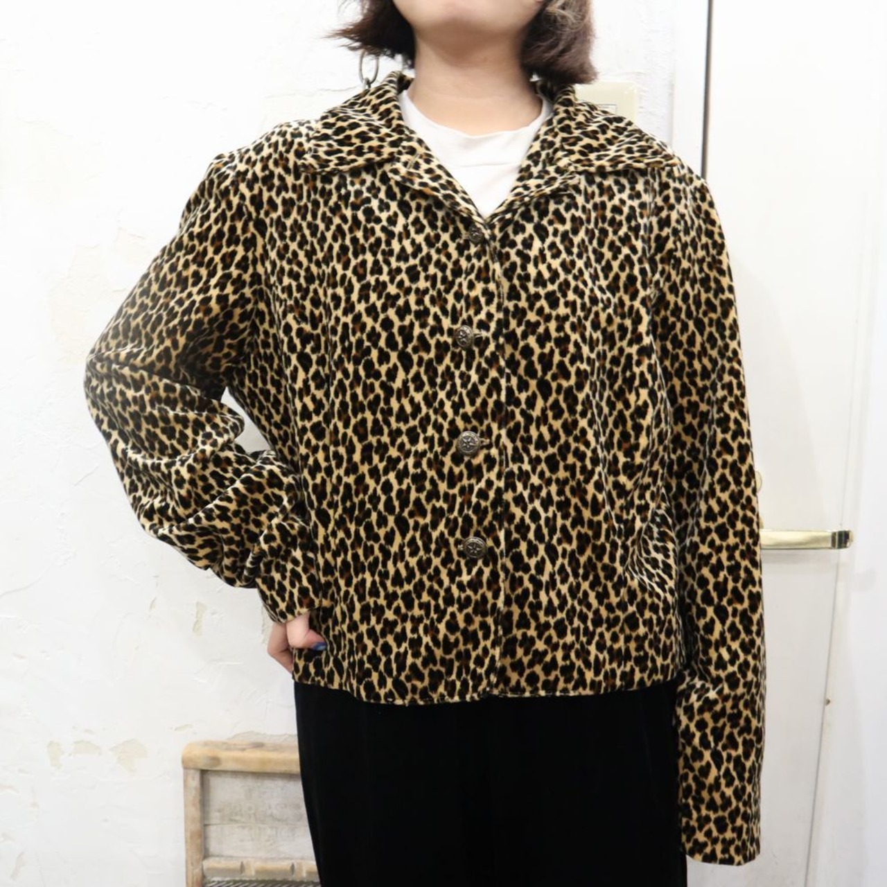 made in USA beige×black×brown leopard pattern velour jacket [k-1406]