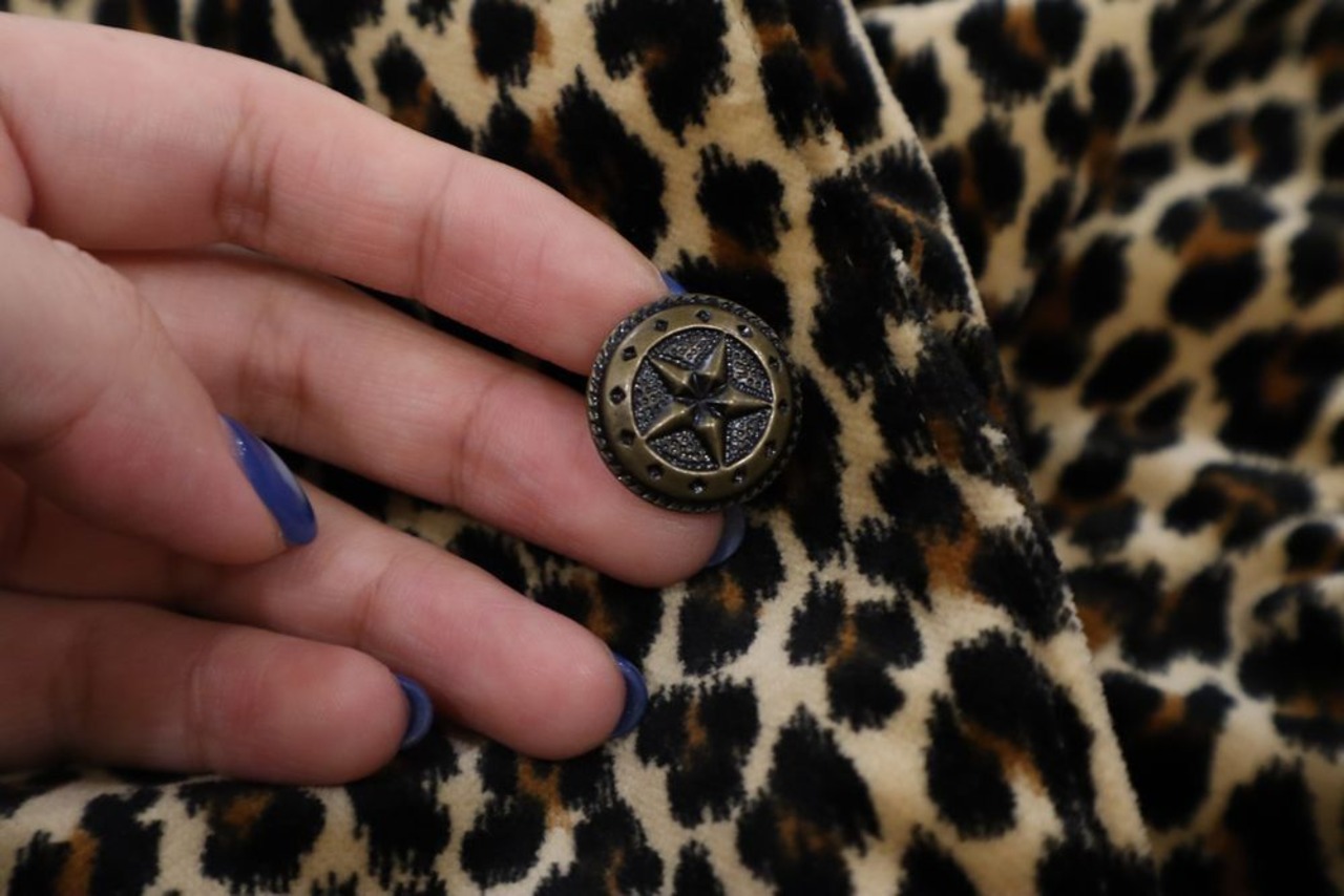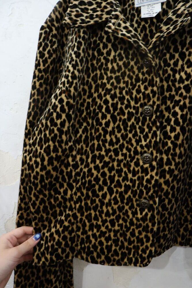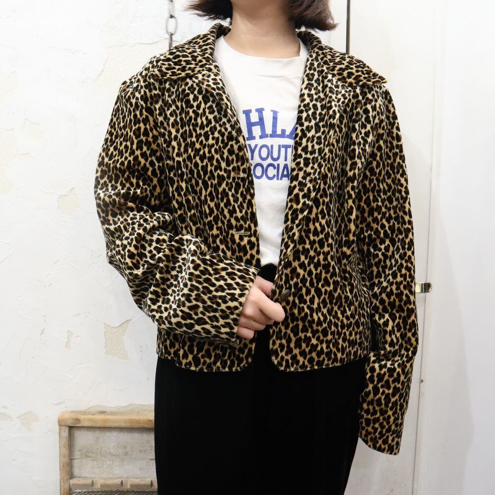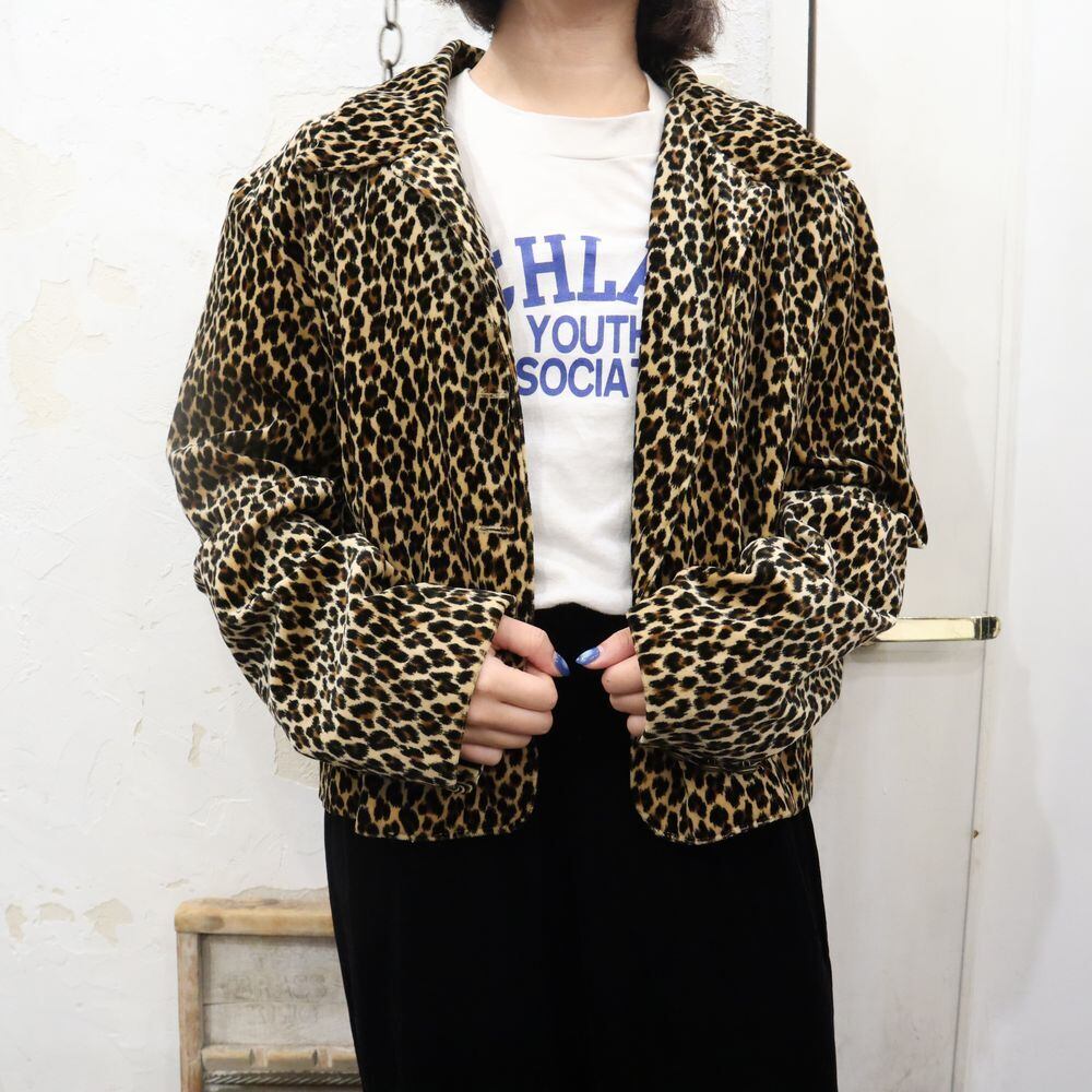 made in USA beige×black×brown leopard pattern velour jacket [k-1406]