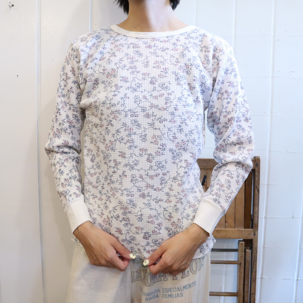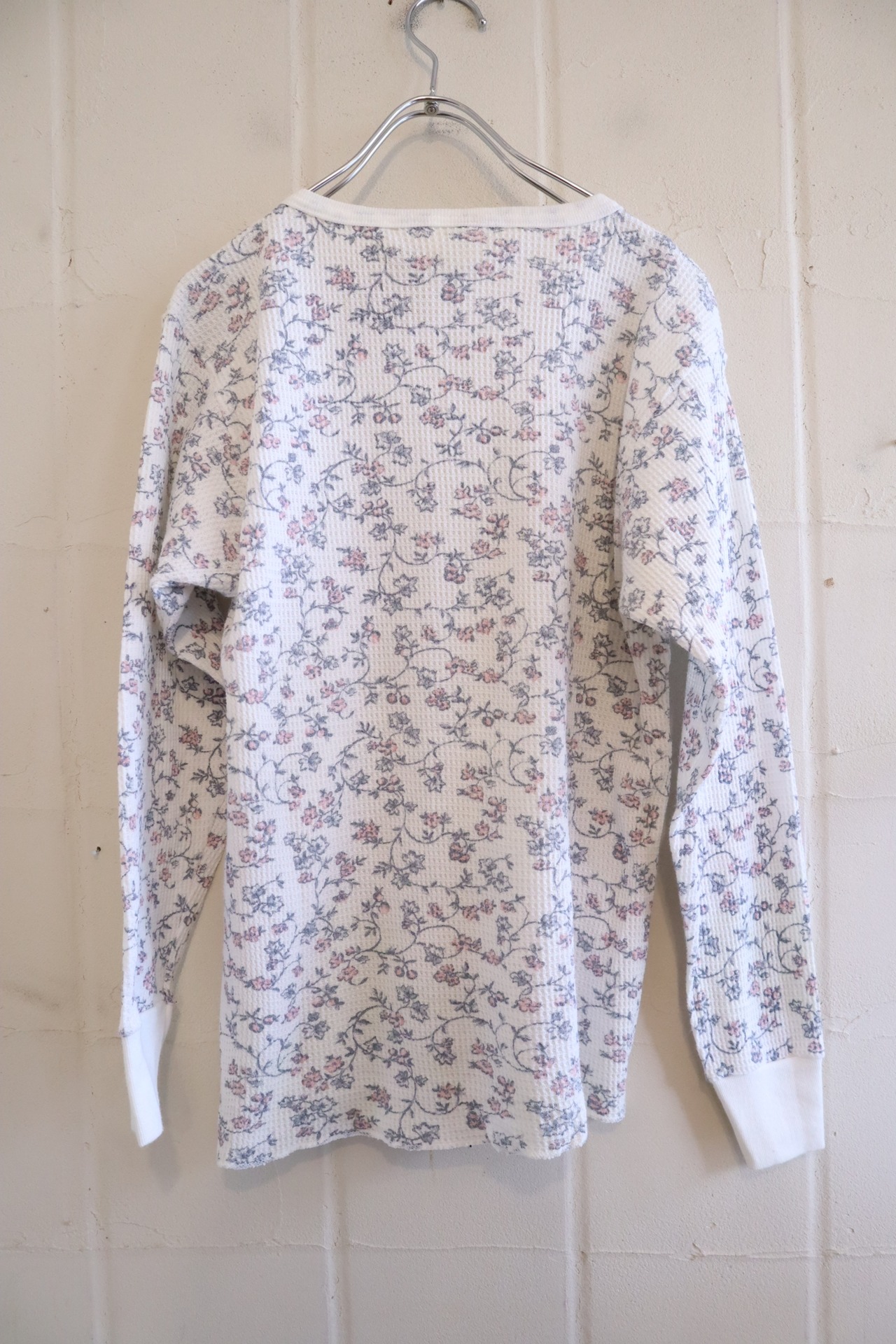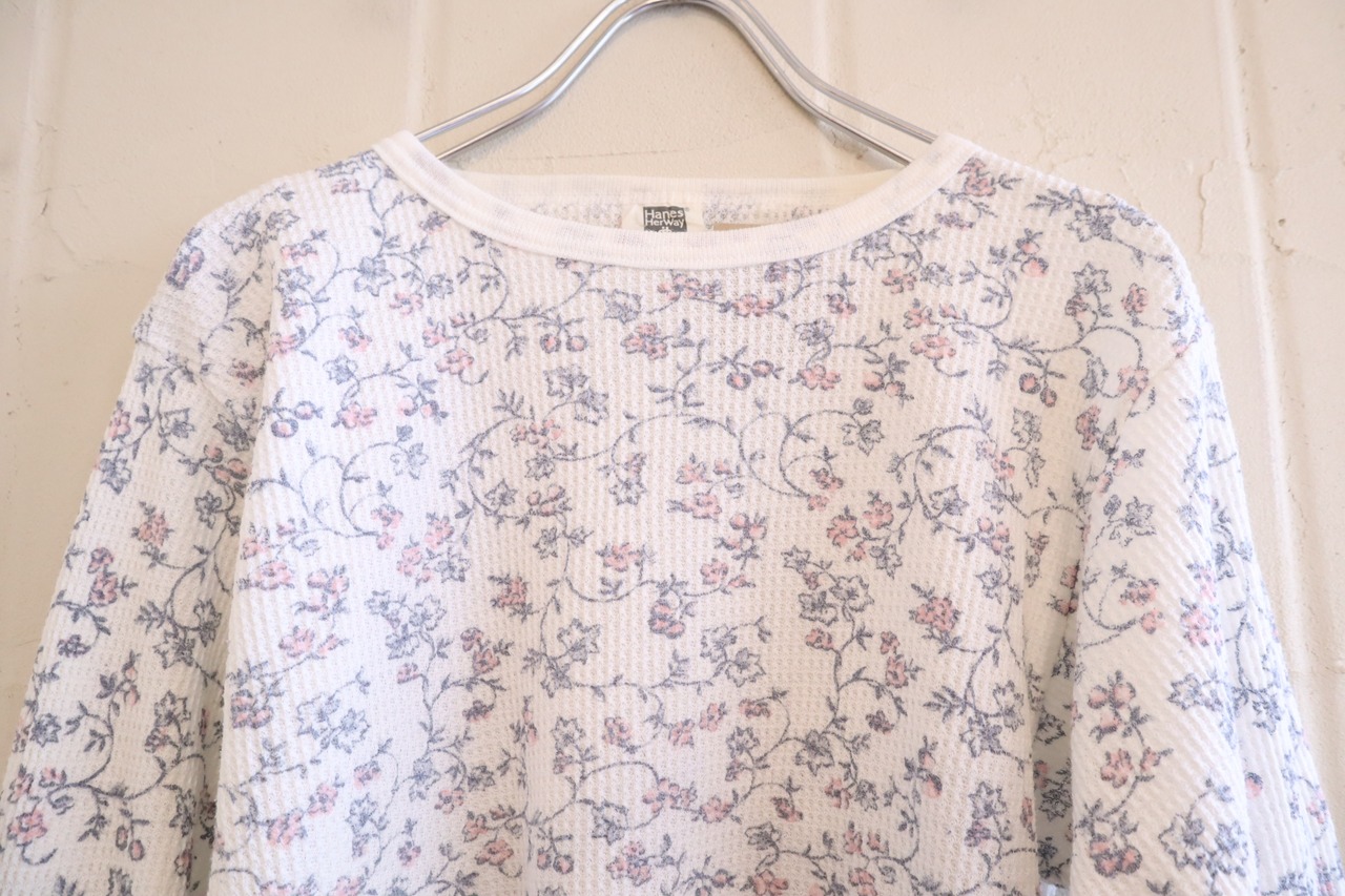 "Hanes" white×gray flower long sleeve thermal tops [l-1410]