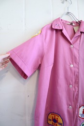 dull pink patch design bowling shirt [l-1418]