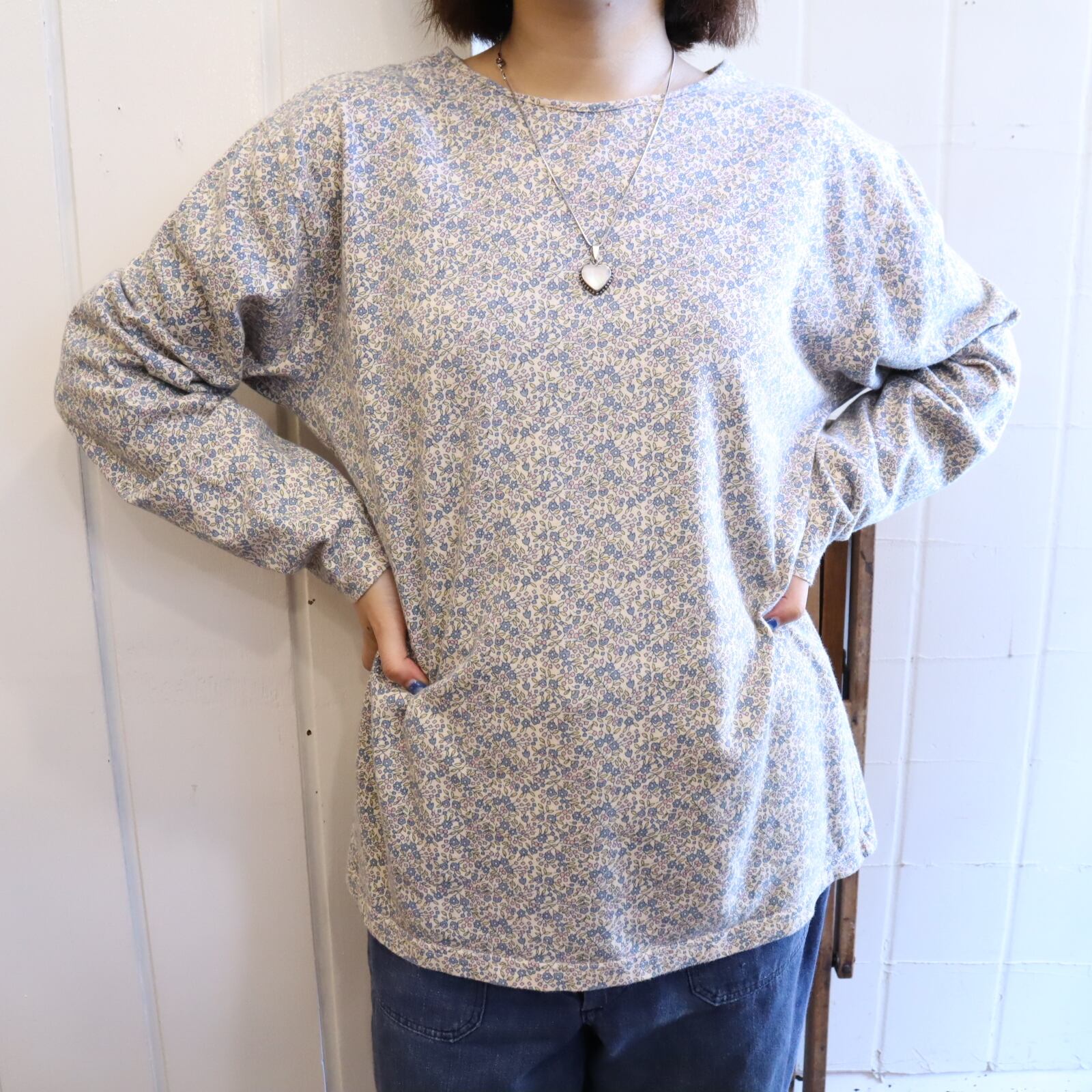 "Eddie Bauer" dull blue × pail pink flower pattern tops [l-1422]