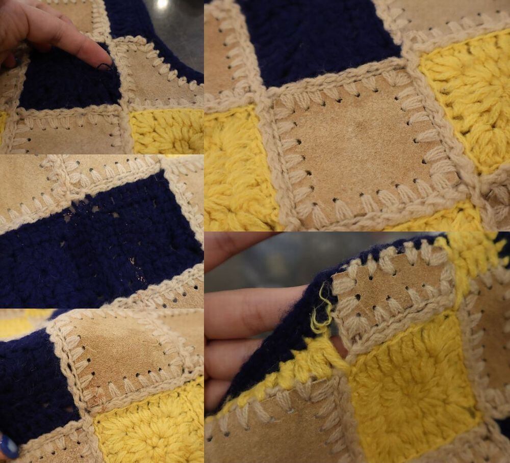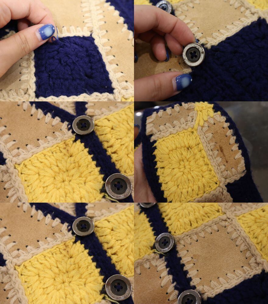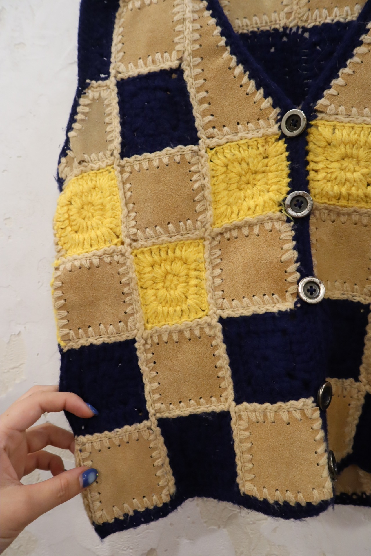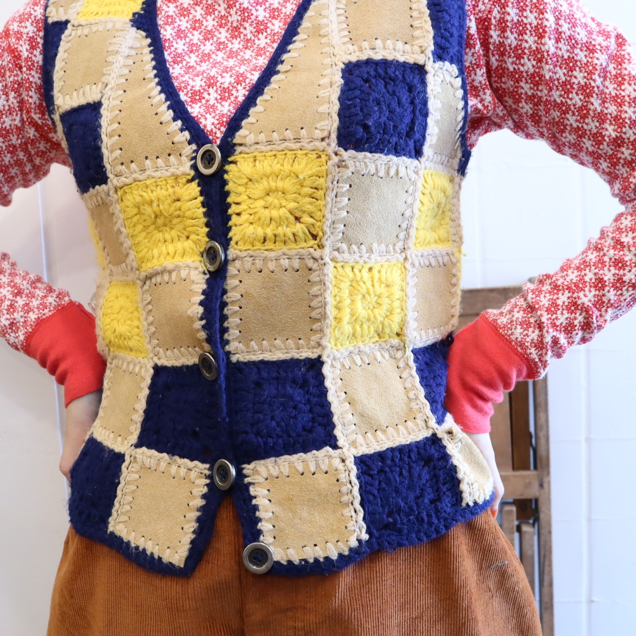 レザーとグラニースクエアのパッチワークが可愛いベストです♡