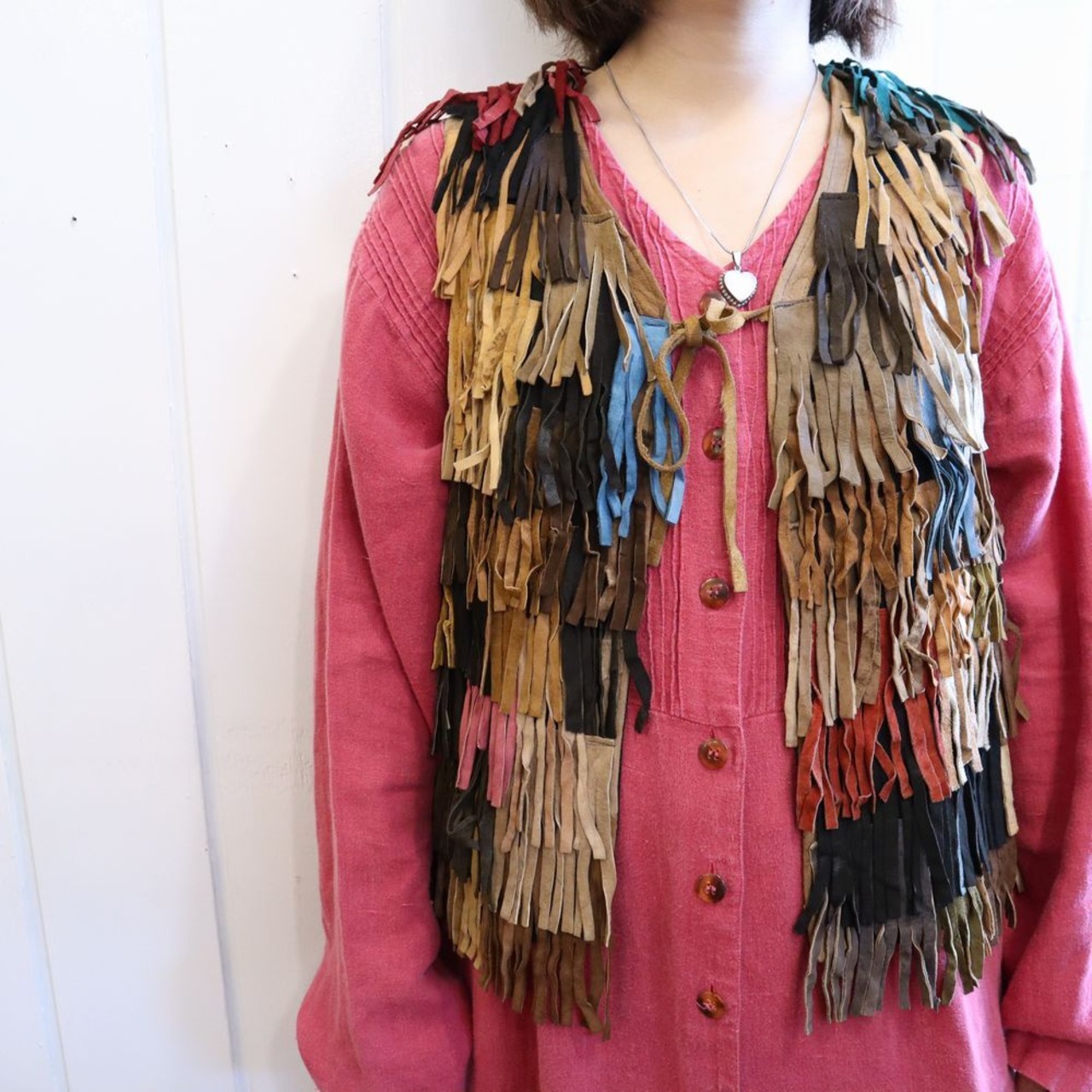 ブラウンにレッドやブルー、パープルなどカラーリングが可愛いレザーベストです♡