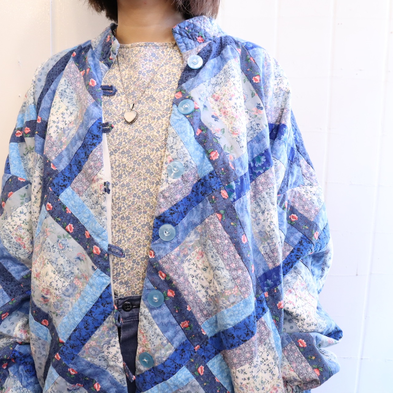 lightblue×pink flower patchwork jacket [l-1431]