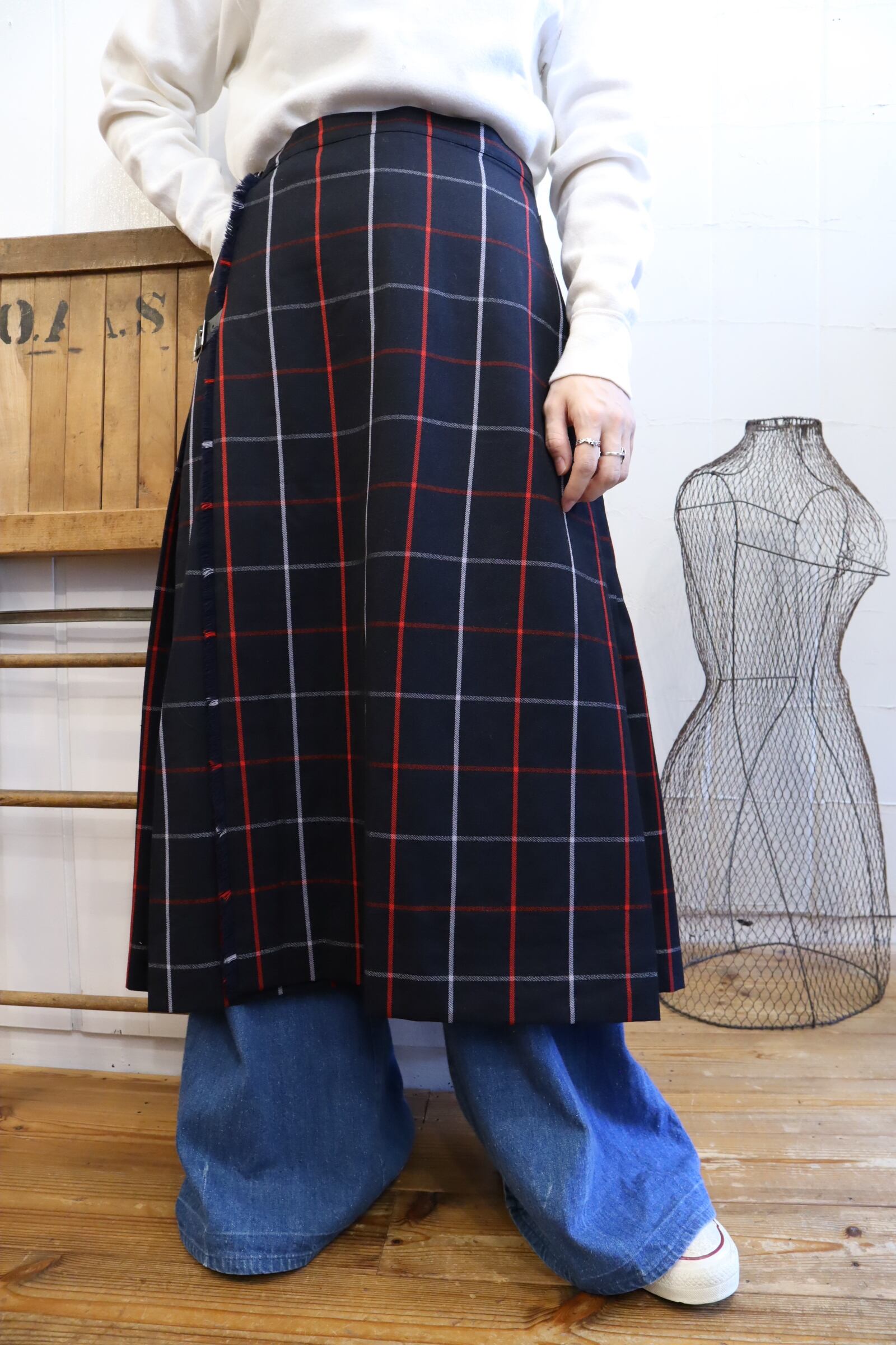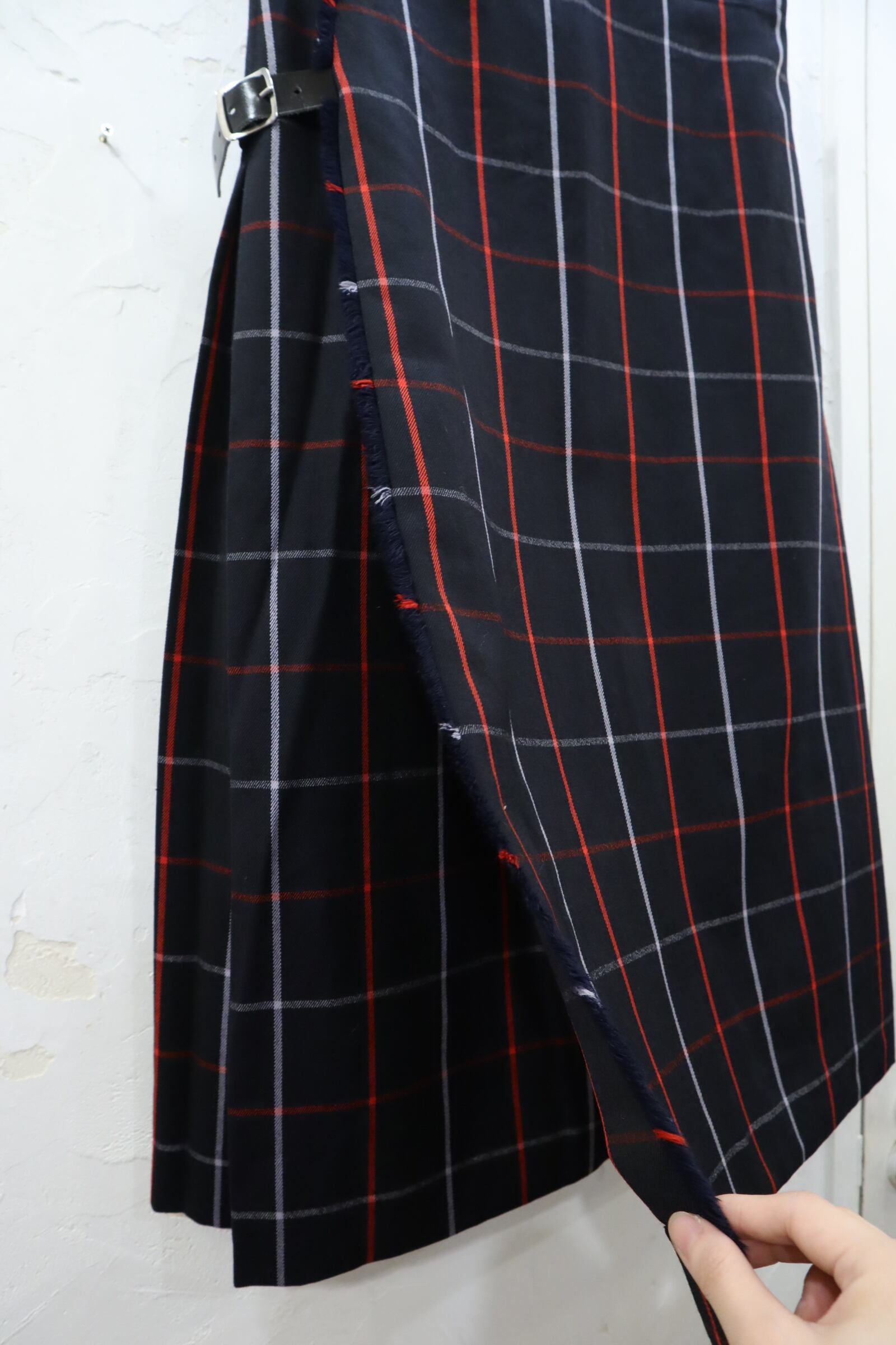black×red×white plaid wool skirt [k-1437]