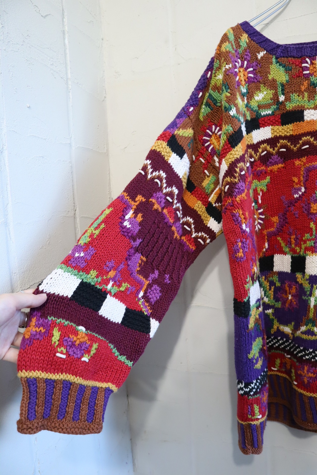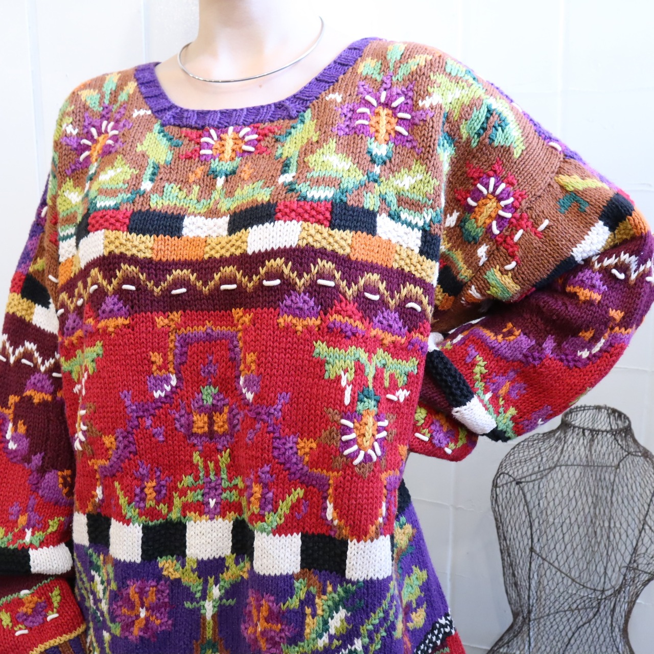 華やかでも大人っぽく着られそうなカラーリングが可愛いコットンニットプルオーバー。