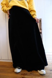 black plain velour long skirt [l-1446]