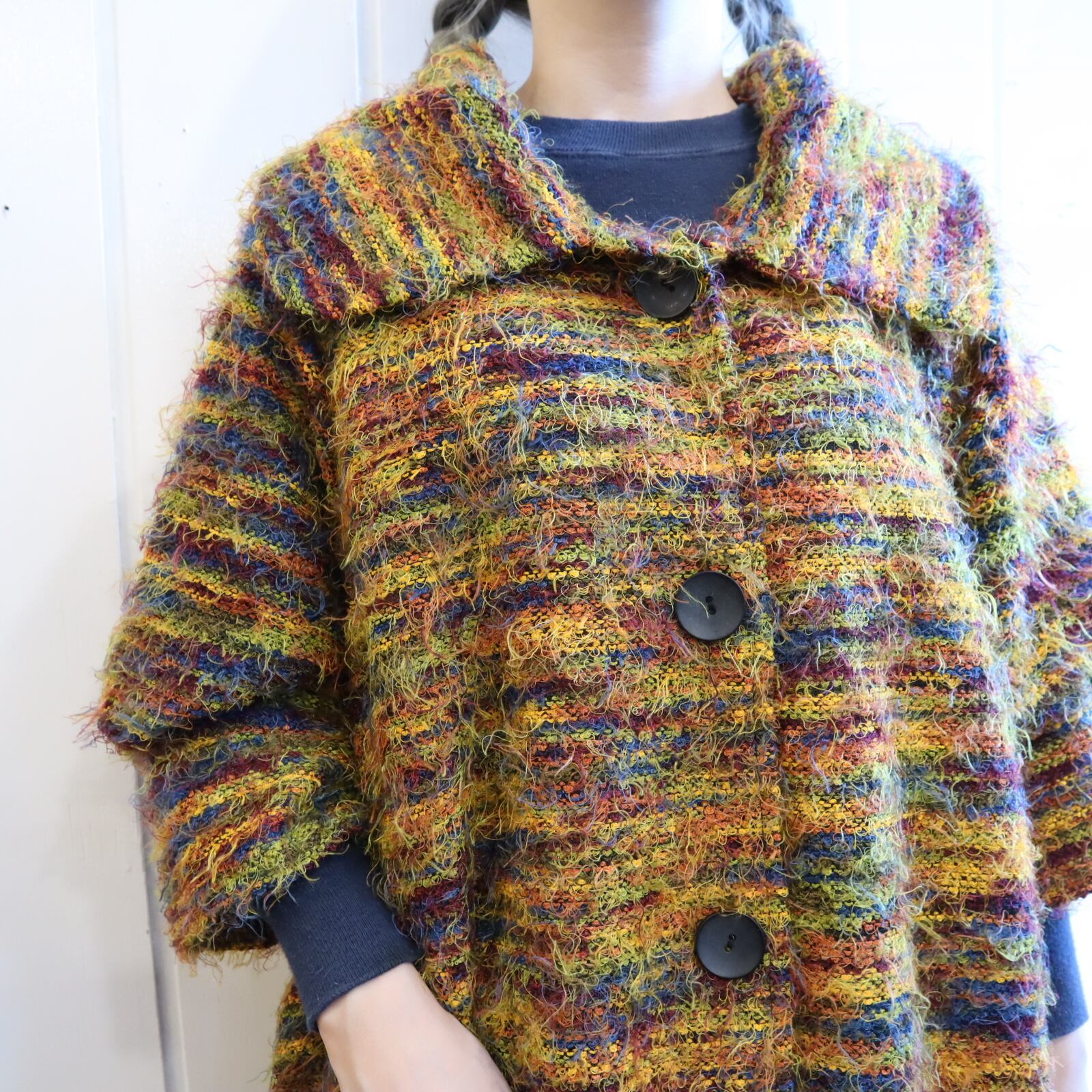 mustardyellow×colorful fringe poncho jacket [l-1451]