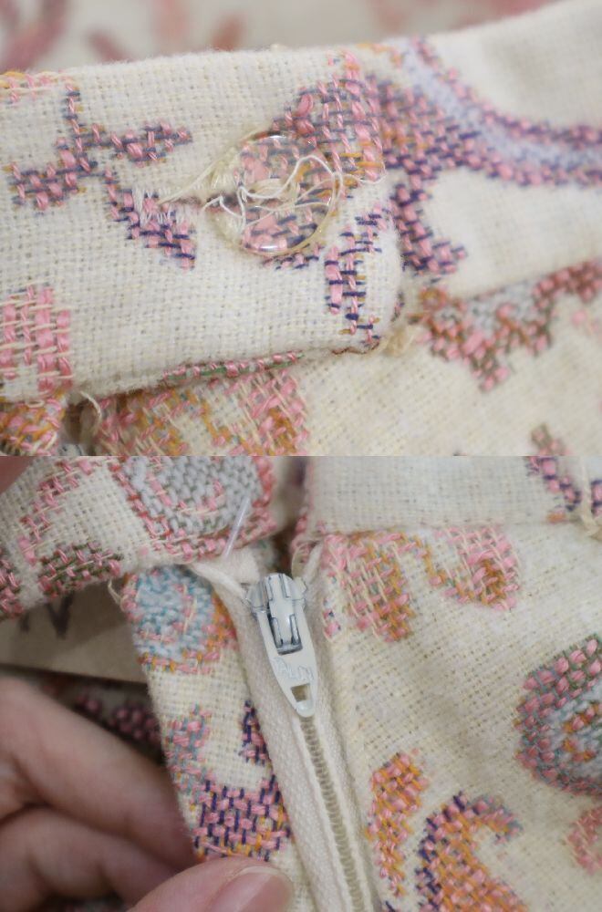 70s offwhite×pink paisley pattern tapestry skirt [l-1462]