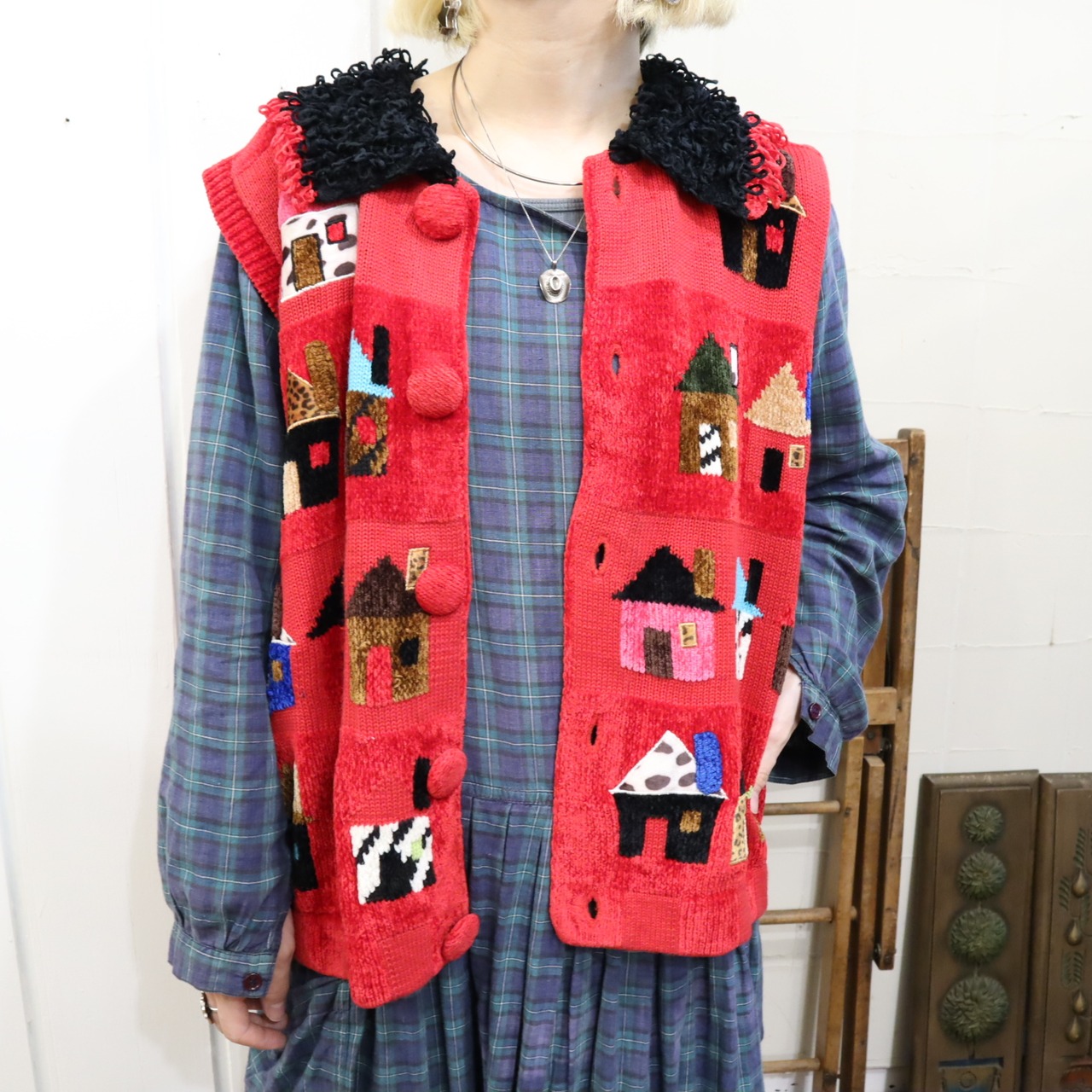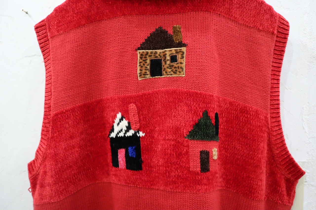 アニマル柄など遊び心のある柄の家デザインが可愛いコットンニットベスト。