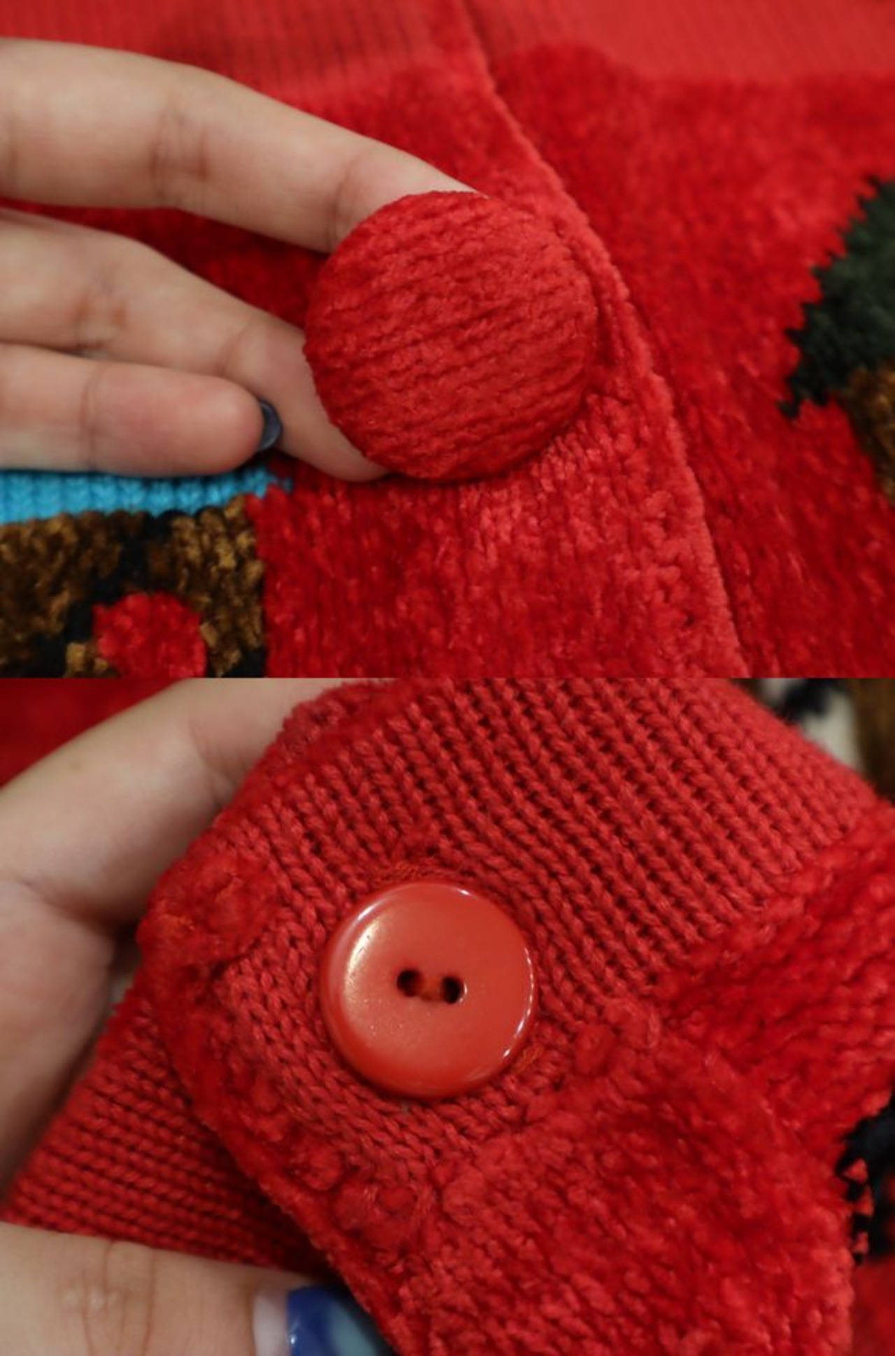 襟のループ編みにやや糸が細くなっている箇所、いくつか糸の飛び出しがございますが、あまり気にならないかと思われます。