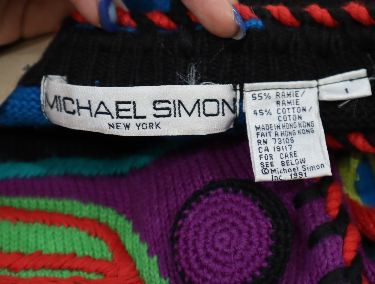 "MICHAEL SIMON" black×colorful cotton knit cardigan [l-1466]
