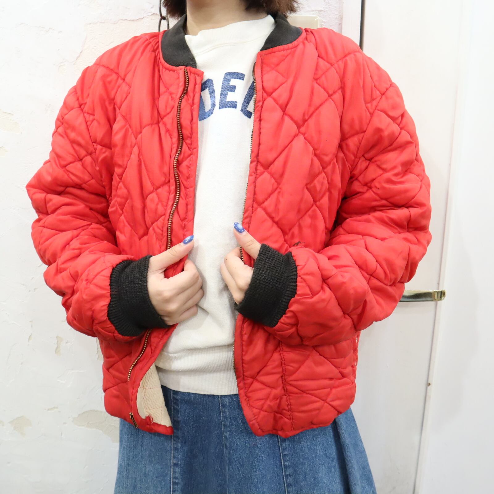 60s red×black quilting jacket [k-1474]