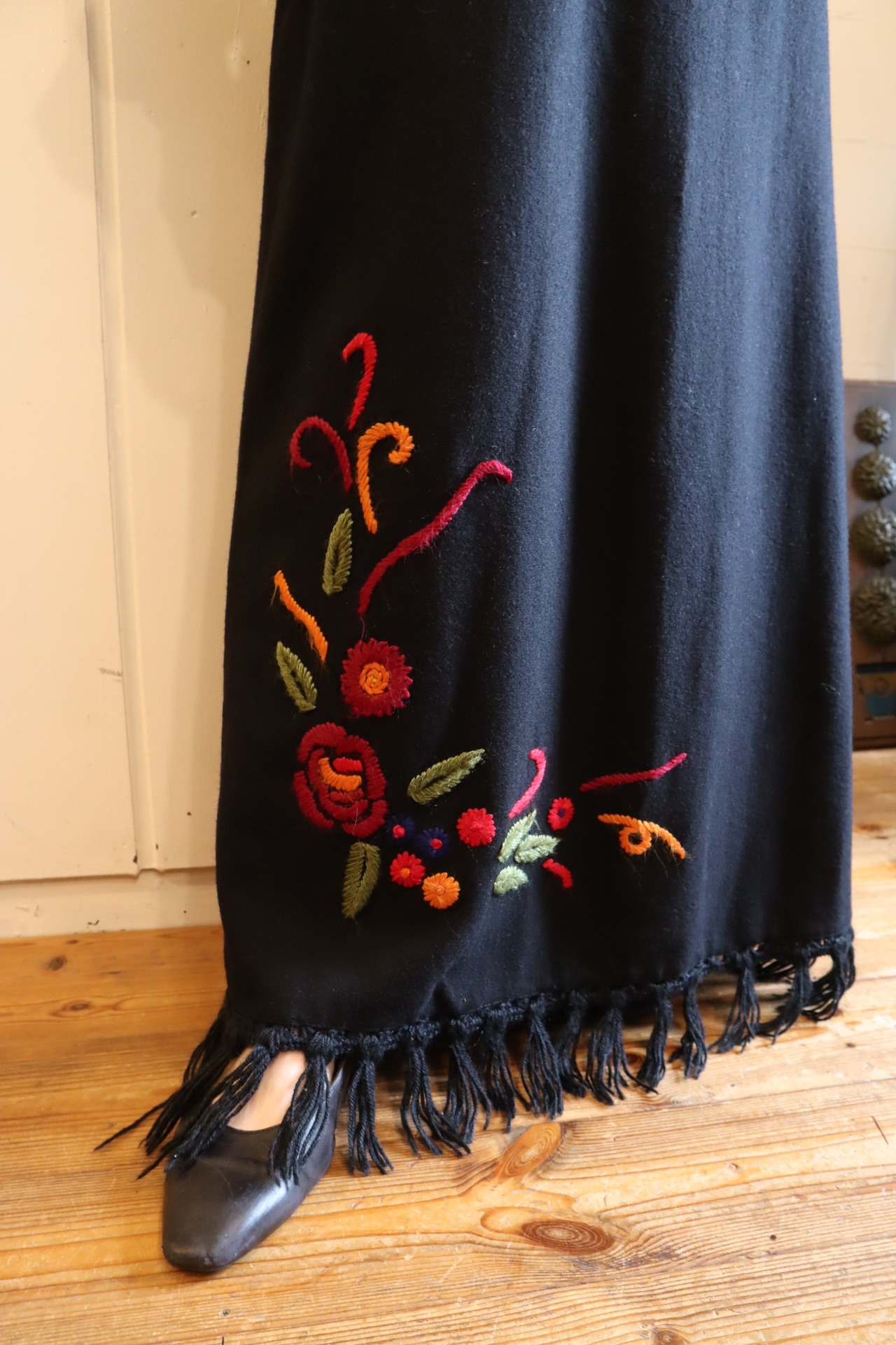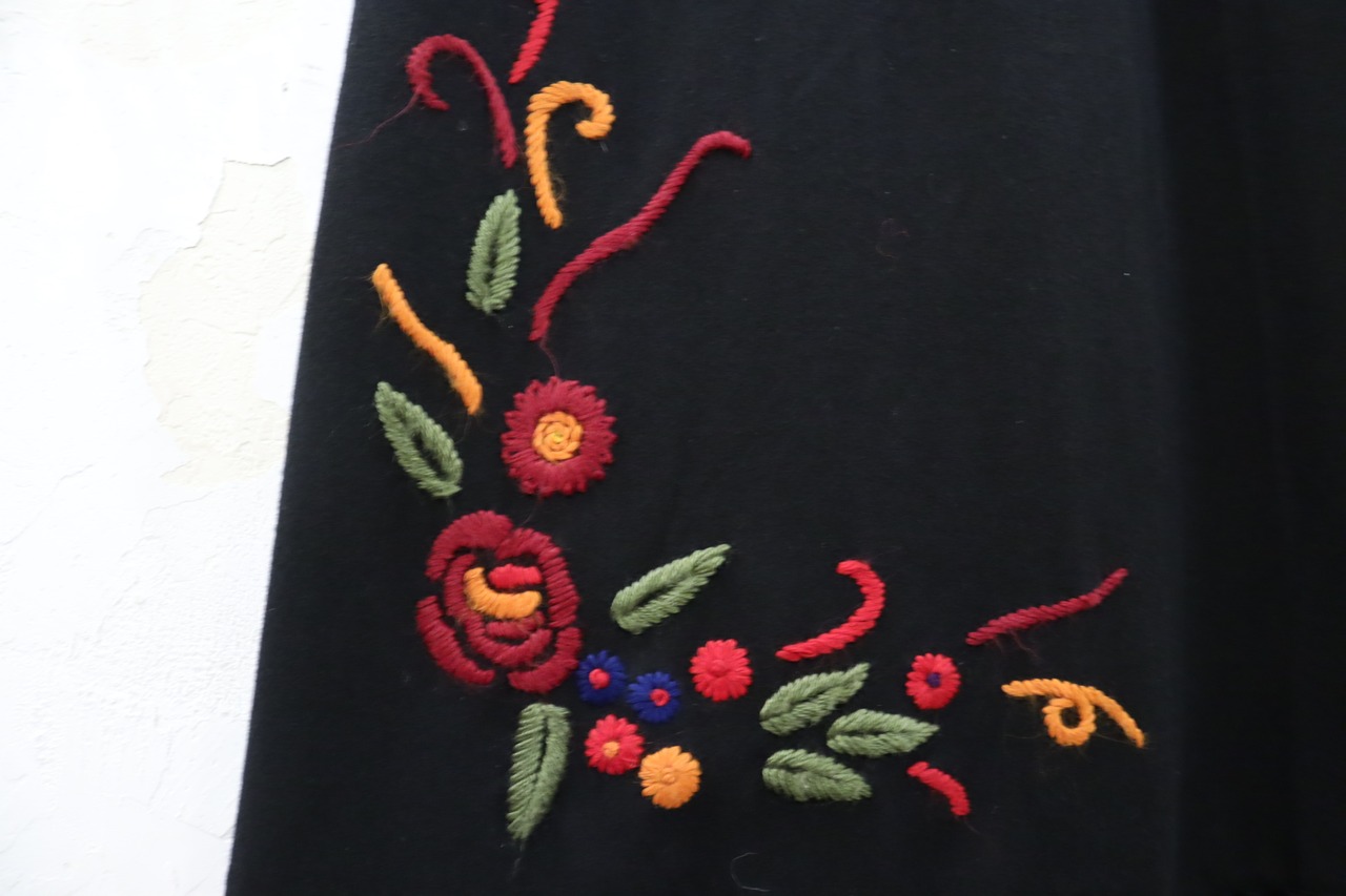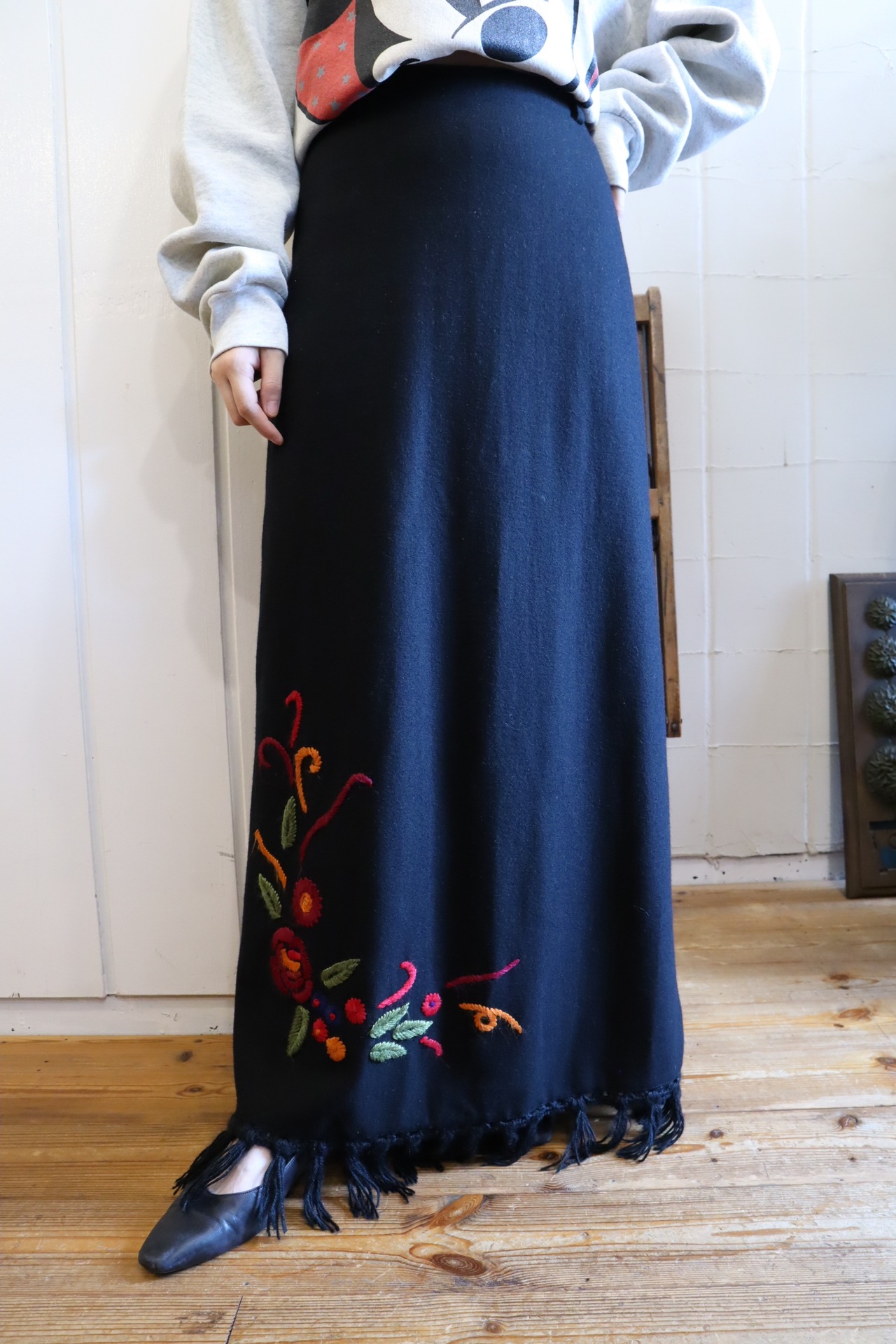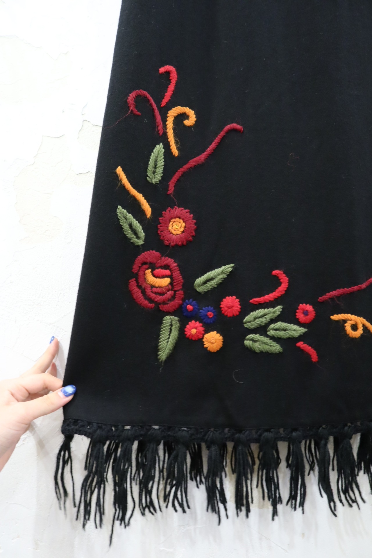 black×red×orange flower embroidery fringe skirt [l-1483]