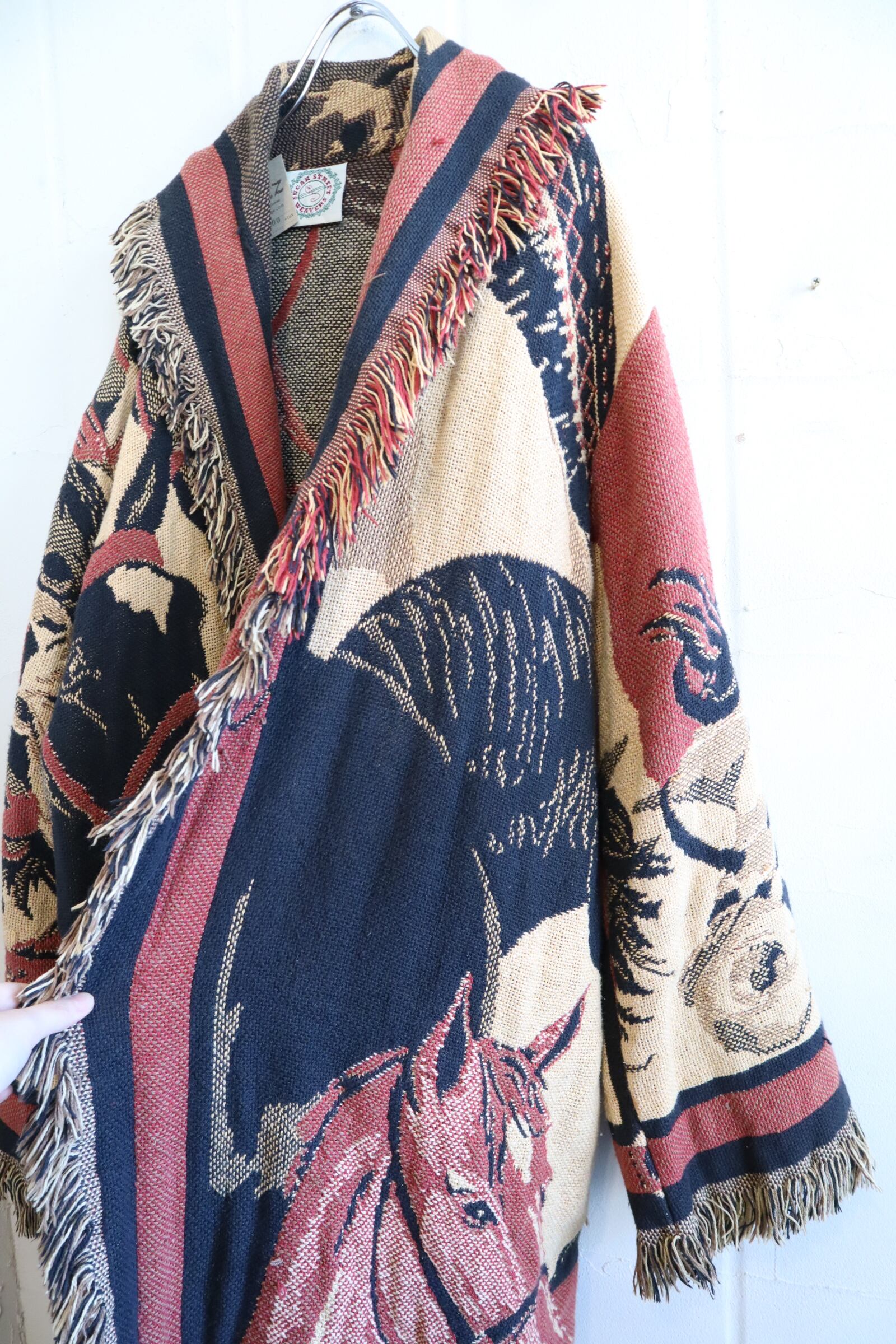 made in USA beige×red brown horse long gobelin jacket [l-1487]