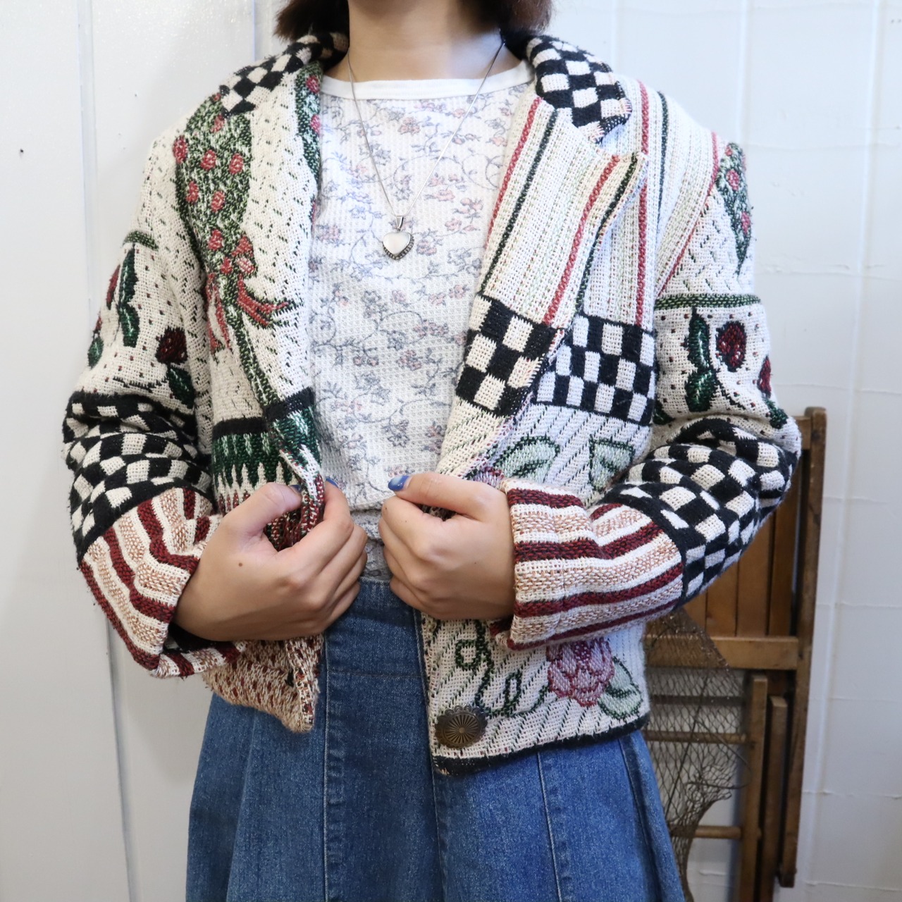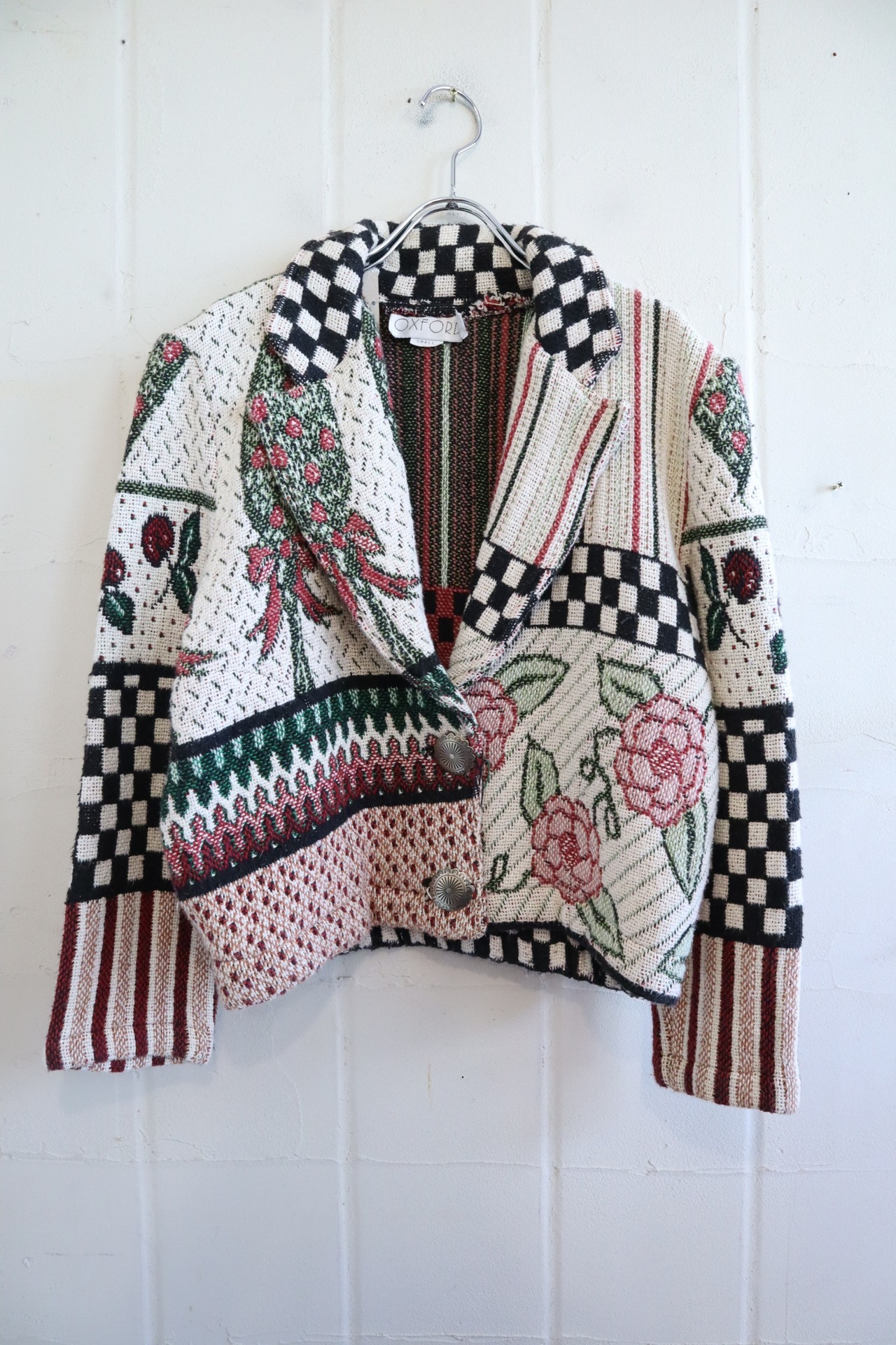 かっしりとしたシルエットやブロックチェックとお花の組み合わせが可愛いゴブランジャケット♡