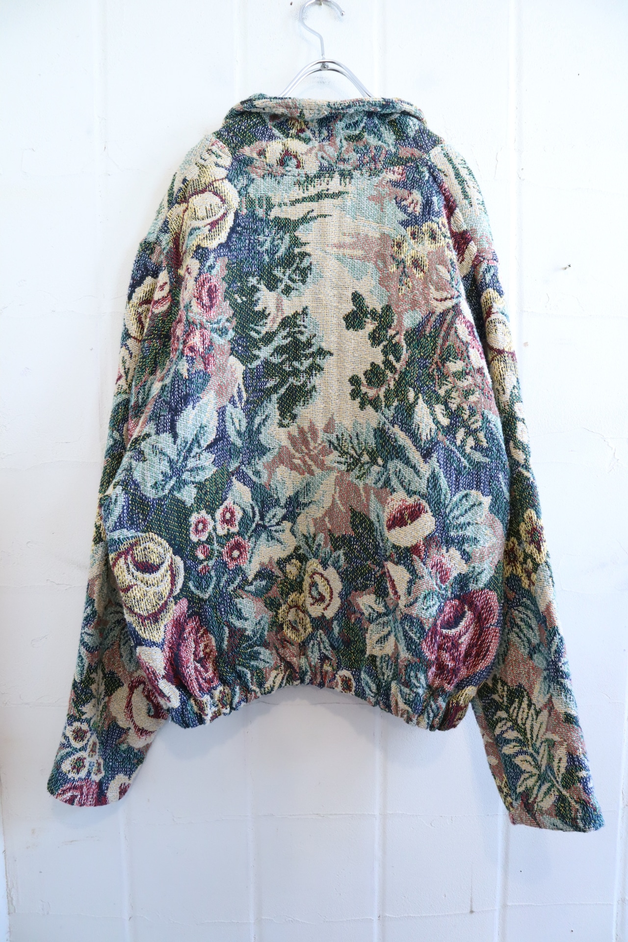 navy×blue green botanical pattern gobelin jacket [l-1489]