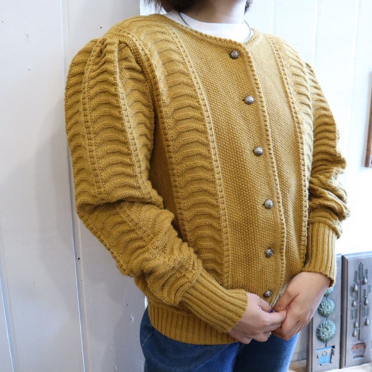mustard puffsleeve tyrol knit cardigan [l-1497]
