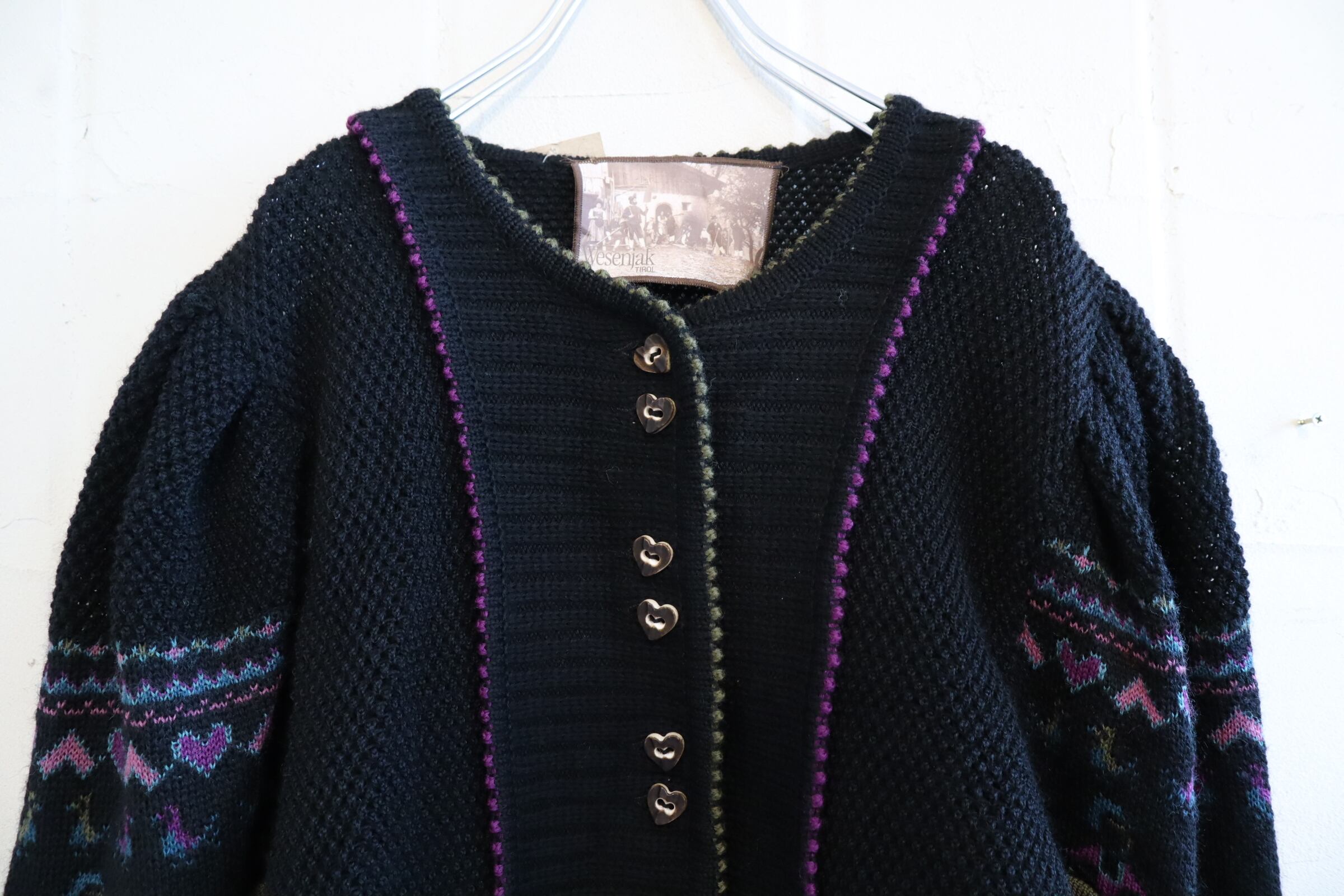 black×purple ♡&human motif puffsleeve tyrol knit cardigan [l-1499]