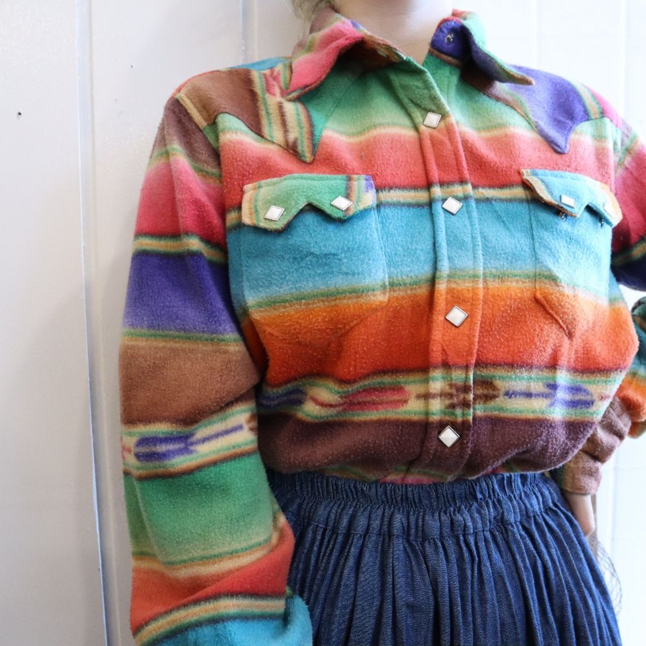 ビビッドなグラデーションカラーが可愛いウエスタンシャツ。
