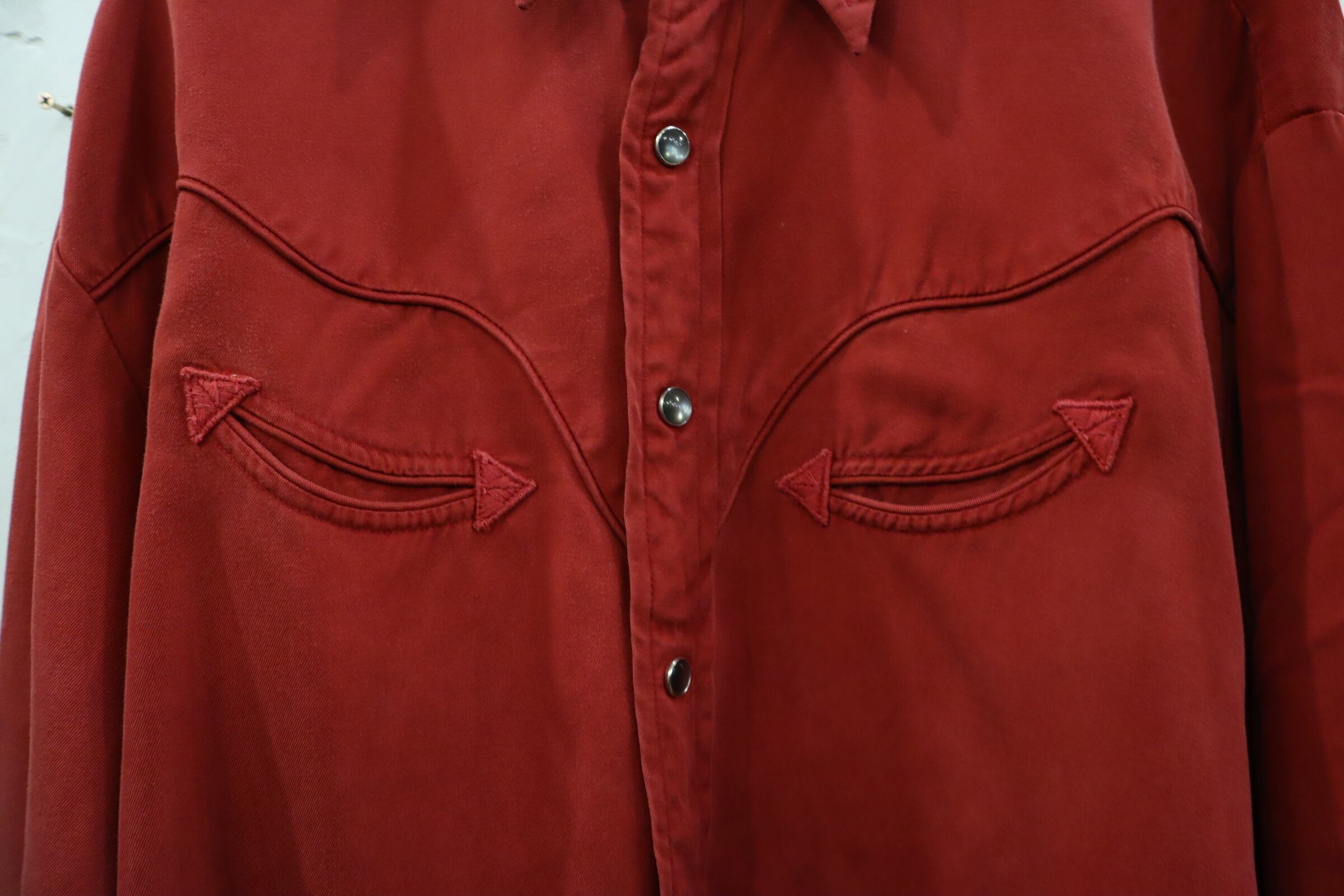 深みのあるレッドカラーが素敵なウエスタンシャツです。