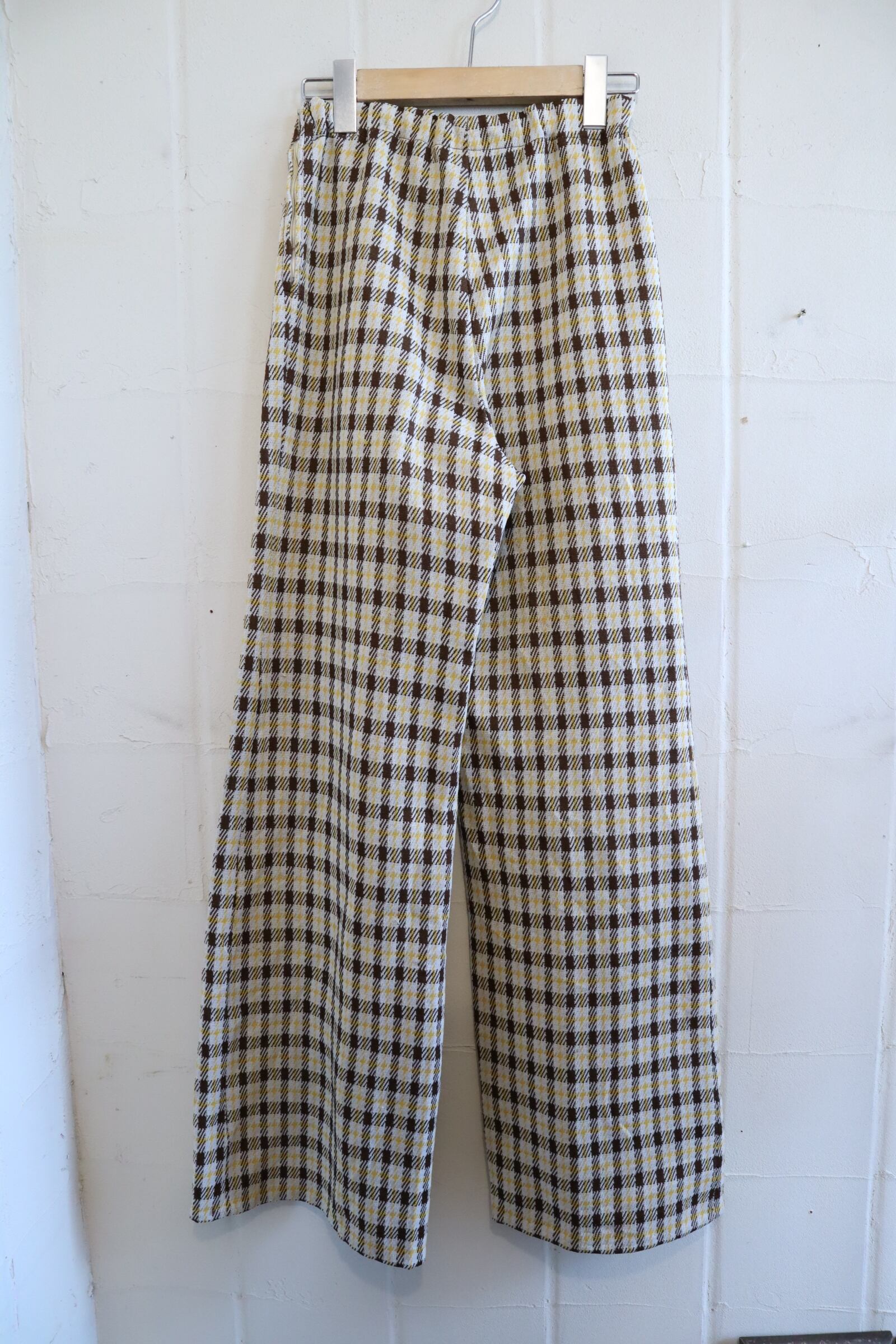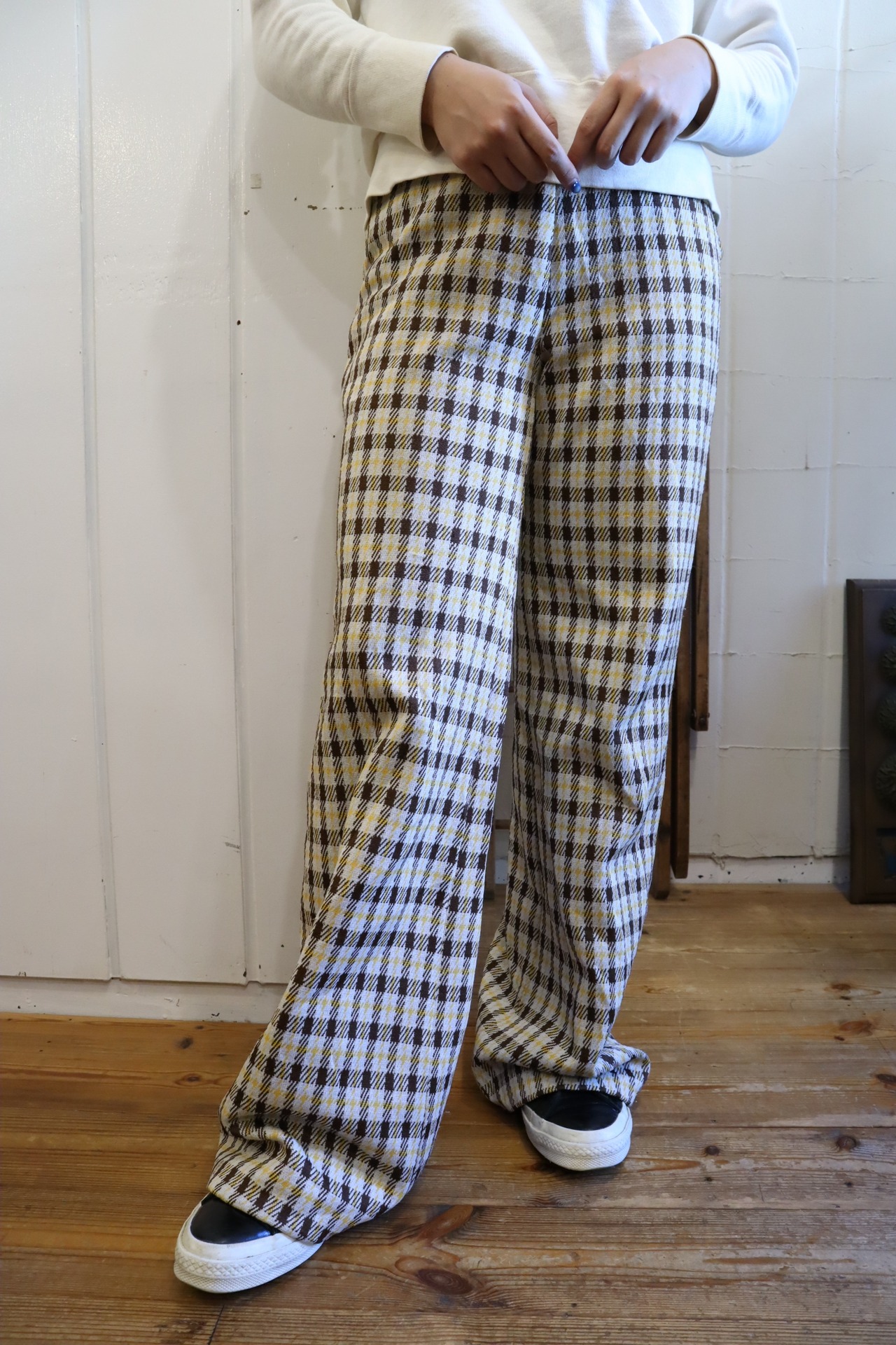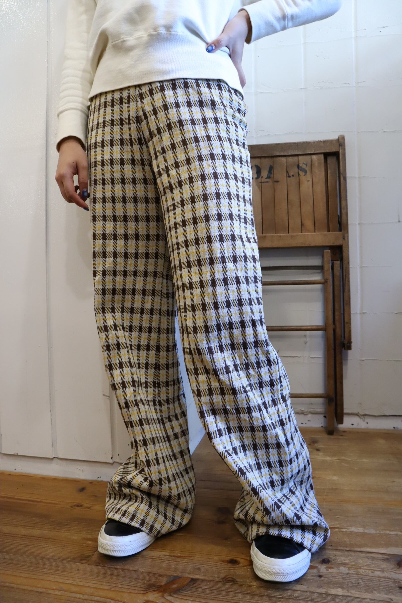 70s offwhite×brown×yellow plaid easy pants [l-1505]