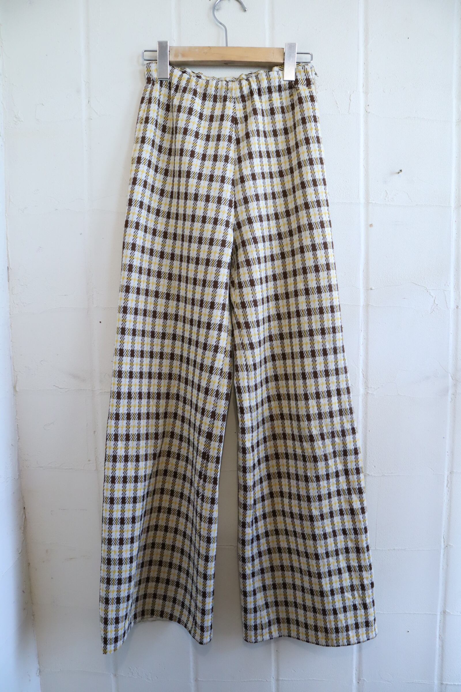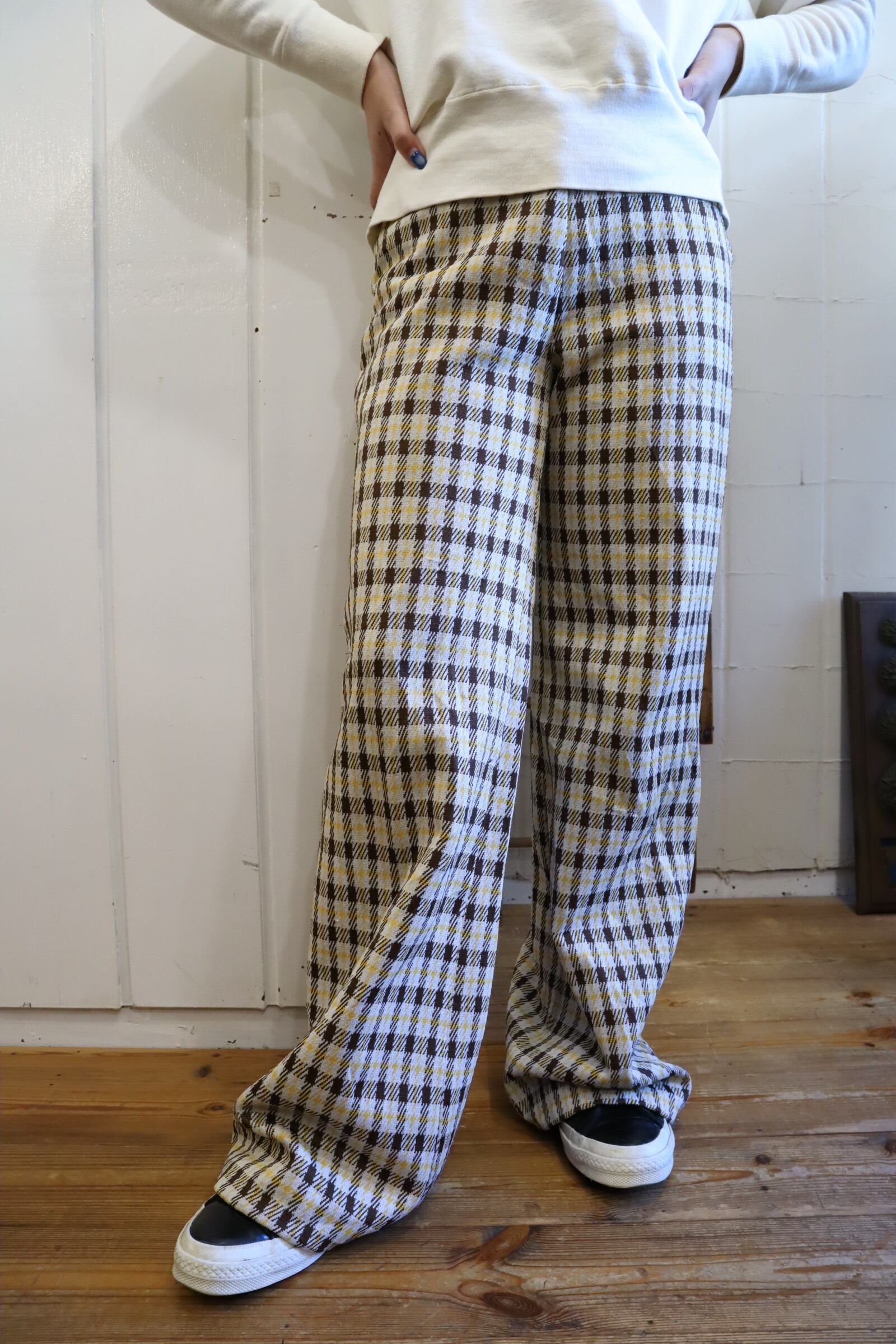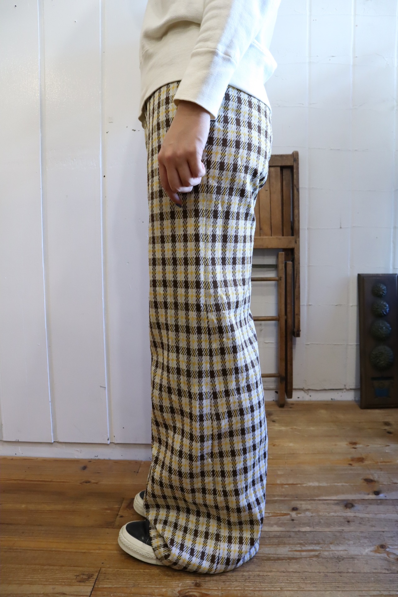 70s offwhite×brown×yellow plaid easy pants [l-1505]