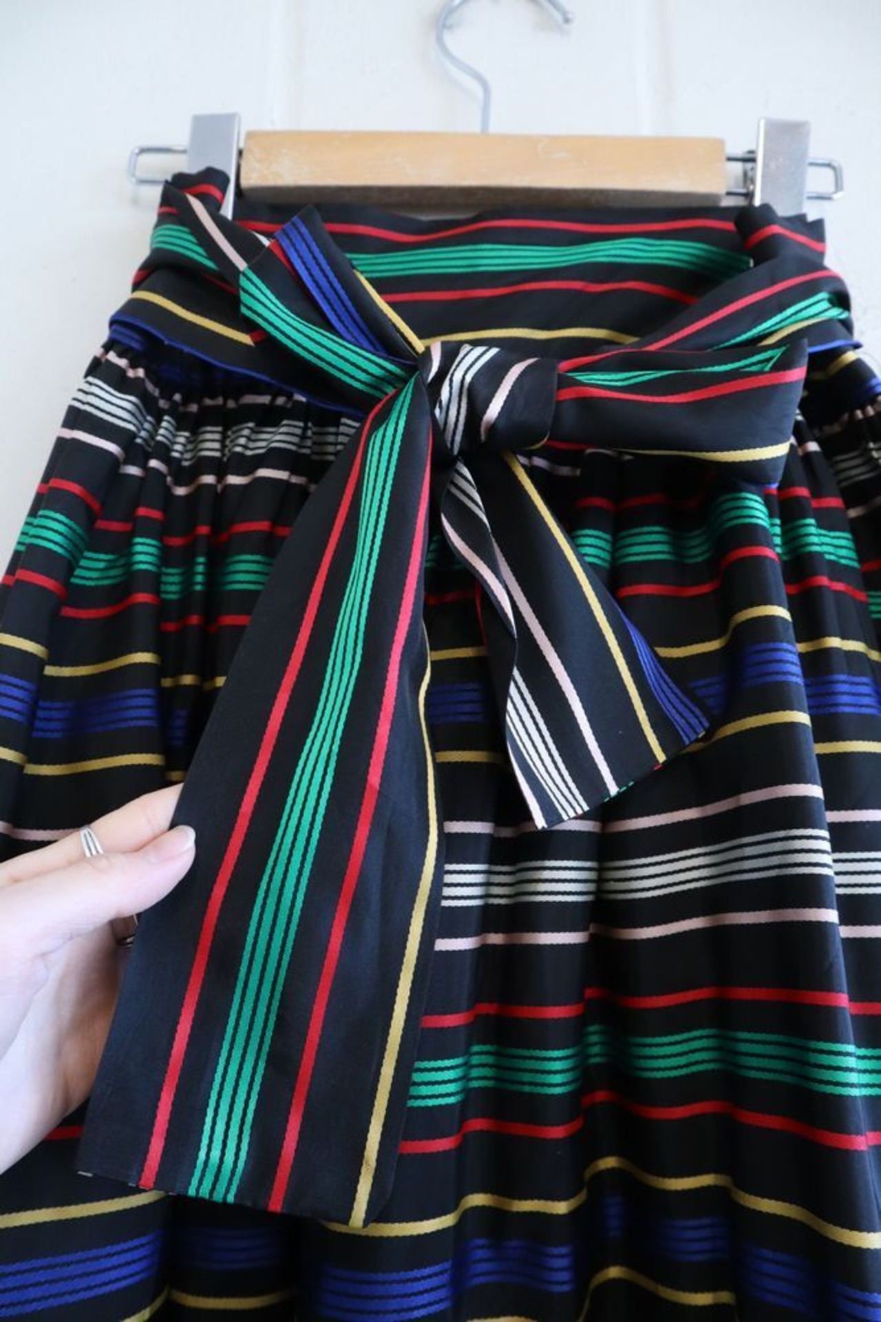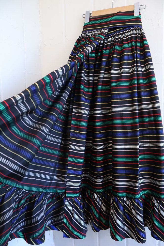 60‐70s black×red×green border long wrap skirt [k-41714]