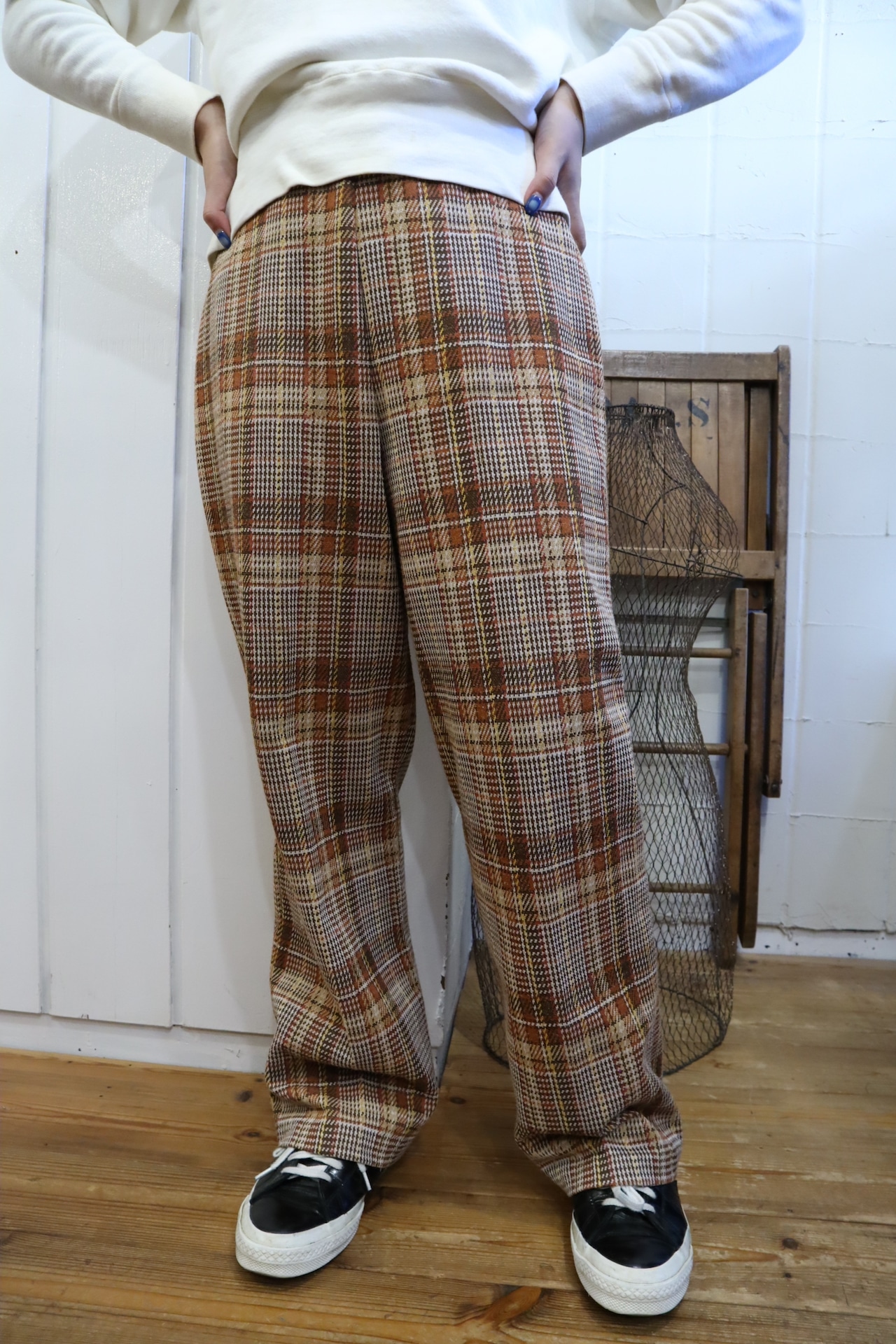 brown×yellow plaid tapered pants [l-1506]