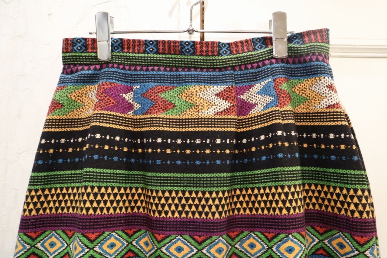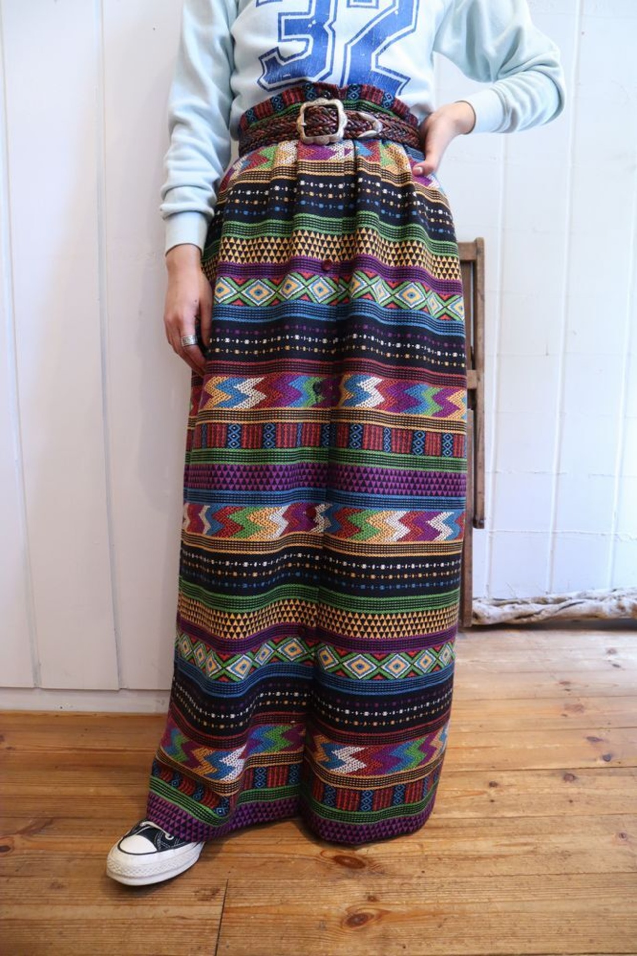 カラフルなカラーリングや幾何学柄が可愛い70sスカートです。