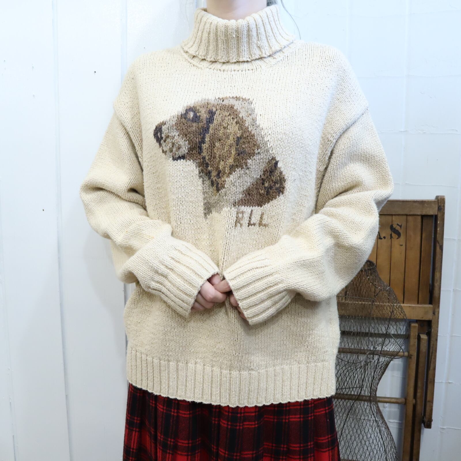 beige×brown dog pattern pullover cotton knit [k-1509]