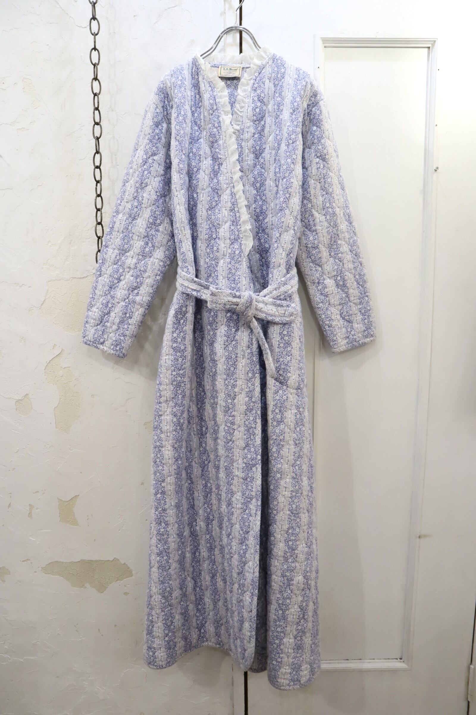 "L.L.Bean" made in USA white×purple flower pattern long quilting gown [k-1513]