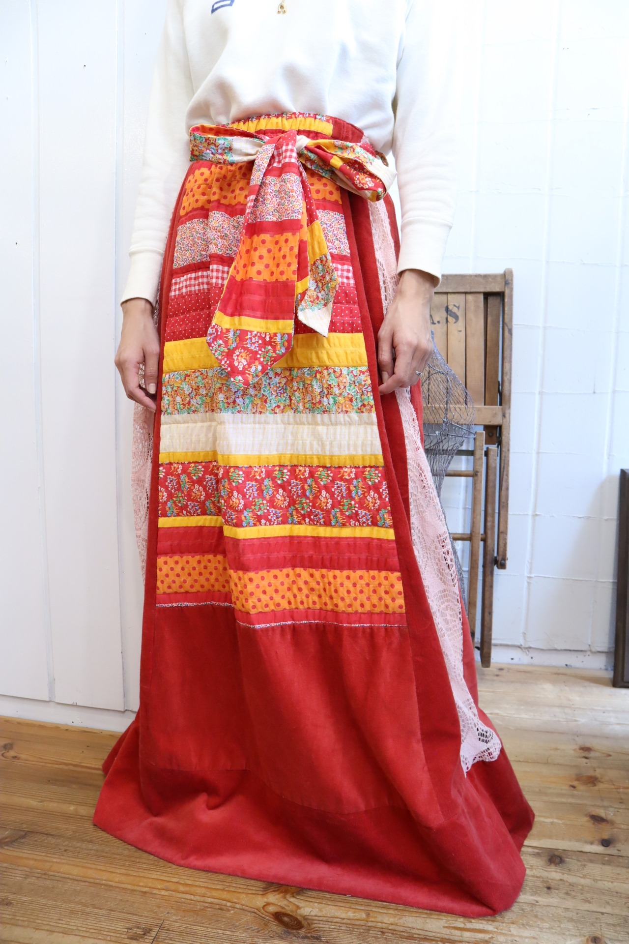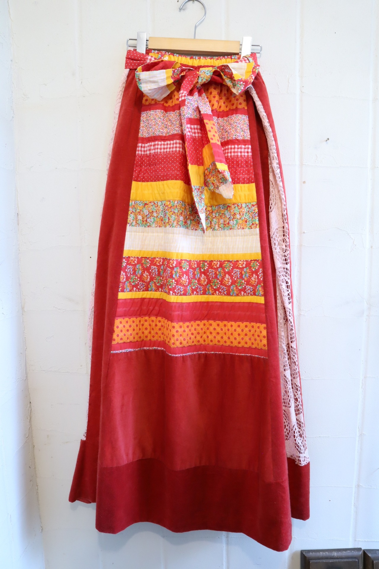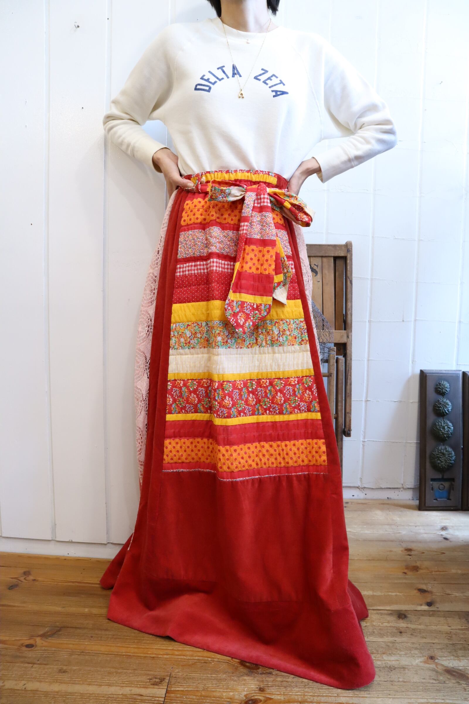 キルティングのパッチワークが可愛い70sロングスカートです。