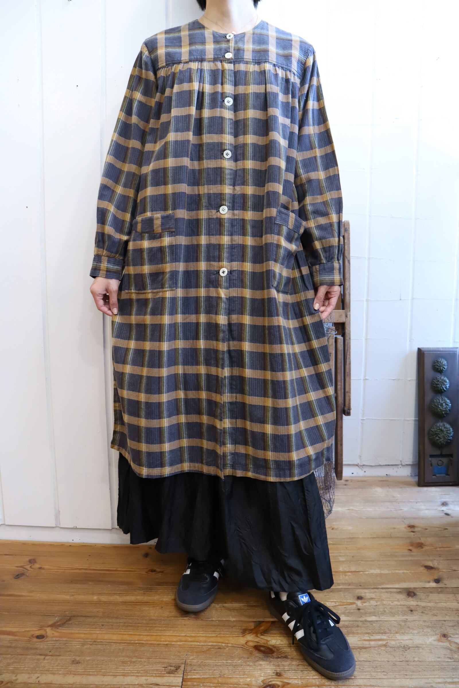 brown×yellow plaid pattern long sleeve dress [k-1519]