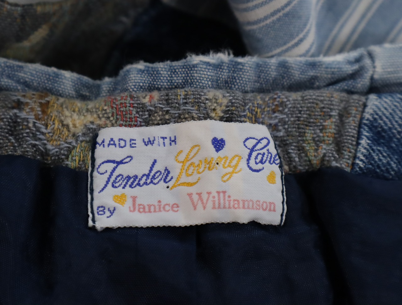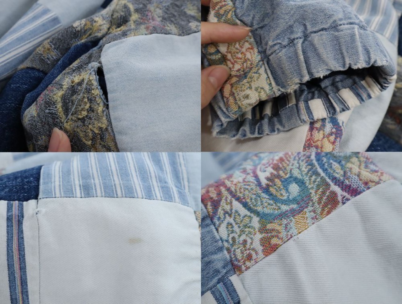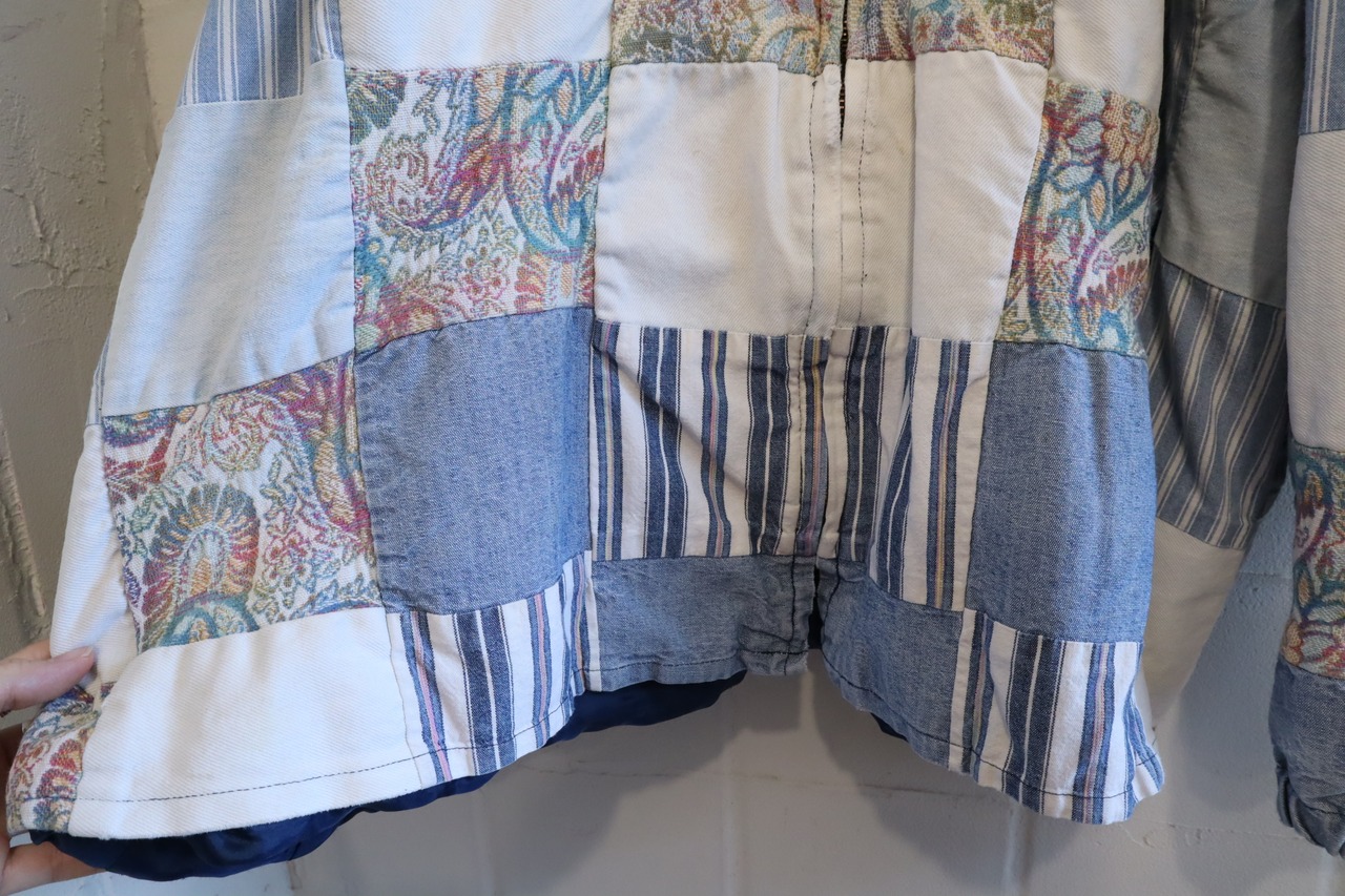 デニムやゴブラン、ストライプなど色々な生地のパッチワークが可愛いジャケットです。