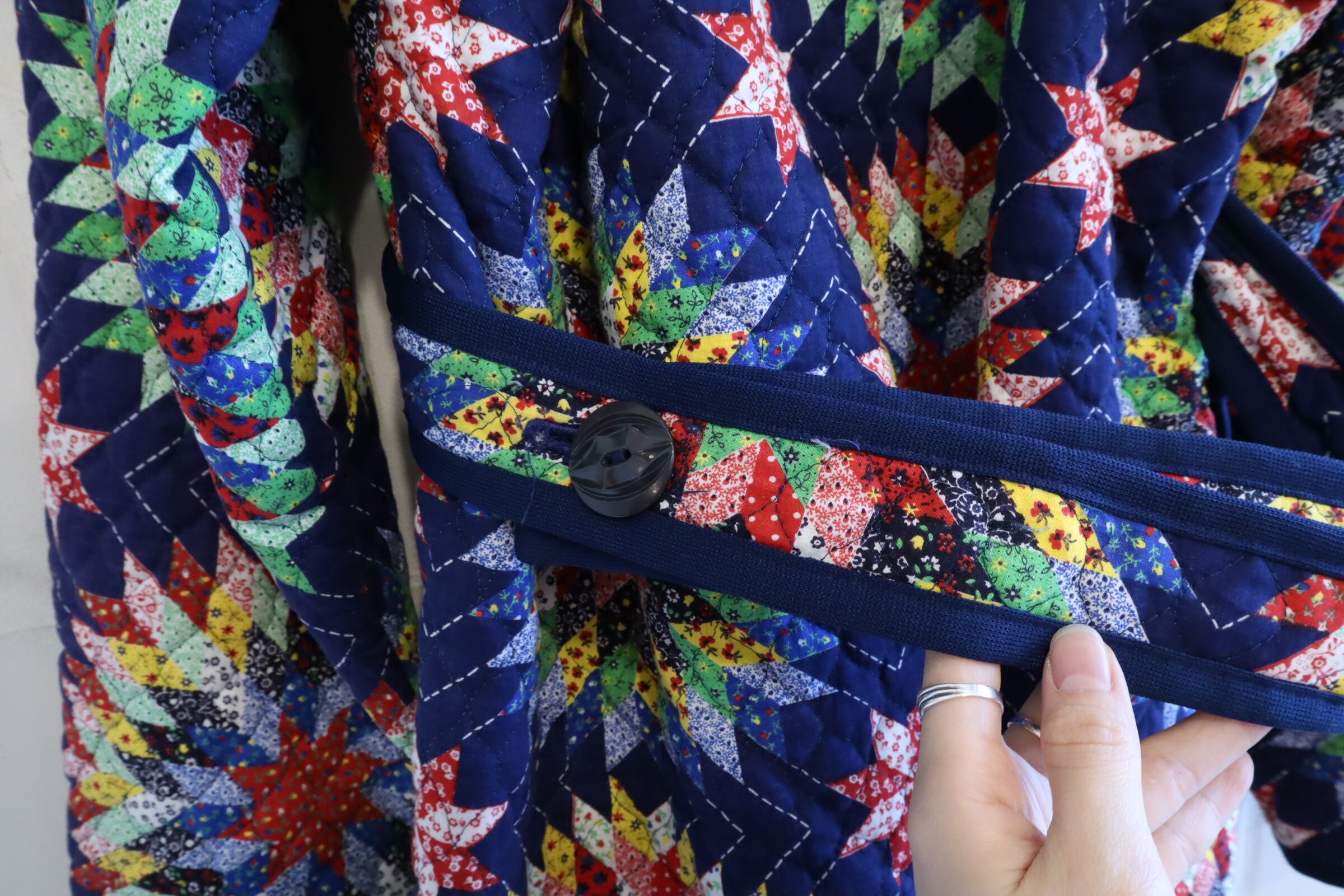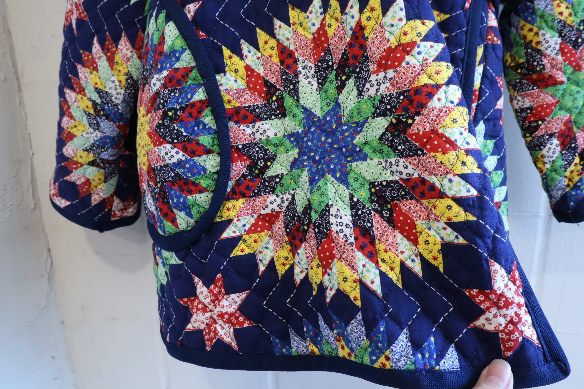 70s blue×colorful patchwork print quilting jacket [l-1527]